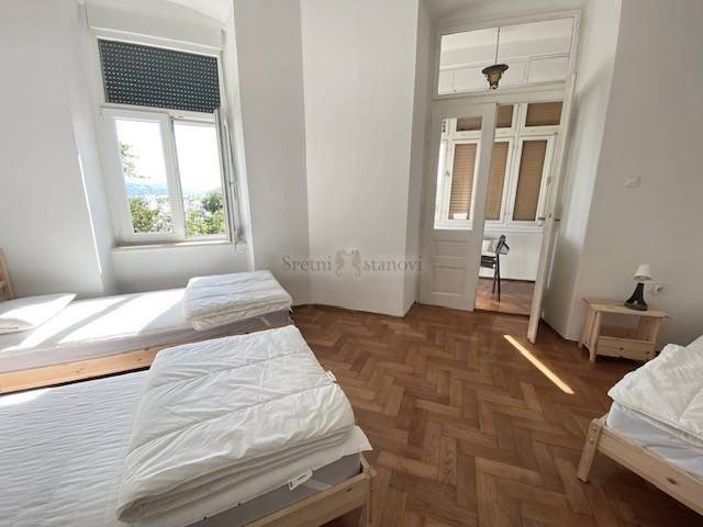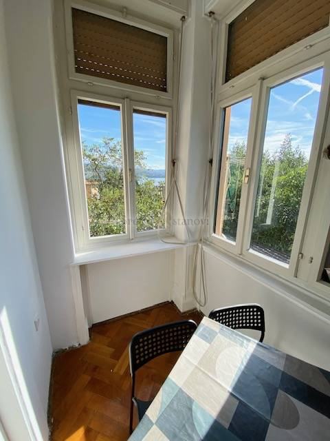 Uredan, svijetli i prostrani stan u Opatiji, na izvrsnoj lokaciji kraj mora i plaža, šetnice i ostalih sadržaja. Stan je na prvom katu i visokom prizemlju, s vlastitim ulazom, sastoji se od dvije spavaće sobe, dnevnog boravka, kuhinje s blagovanskim dijelom, ostave-spremišta/garderobe, kupaone, dodatnog wc-a , ulaznog prostora i terase s krasnim pogledom. Stanu pripada jedno parkirno mjesto. Stan je namješten, opremljen, perilicom rublja i dva TV-a, novim hladnjakom, mikrovalnom i ostalim potrebnim. Grijanje je na klima uređaj i norveške radijatore. Optički Internet i max tv su aktivni. Režije se plaćaju dodatno. Prilika za odličnog stana na lijepoj lokaciji. Kreveti na slici koji su viška će se ukloniti.