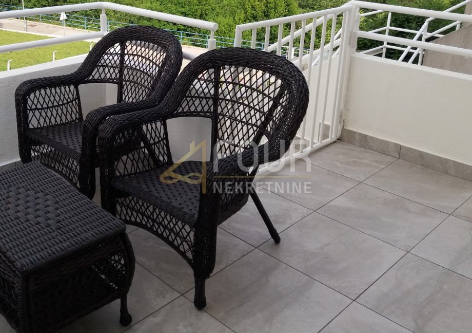 Sastoji se od ulaznog balkona, zasebne kuhinje, prostranog dnevnog boravka s izlazom na lođu i balkon s pogledom na more, dvije komforne spavaće sobe, velike kupaonice s kadom i gostinjskog toaleta.