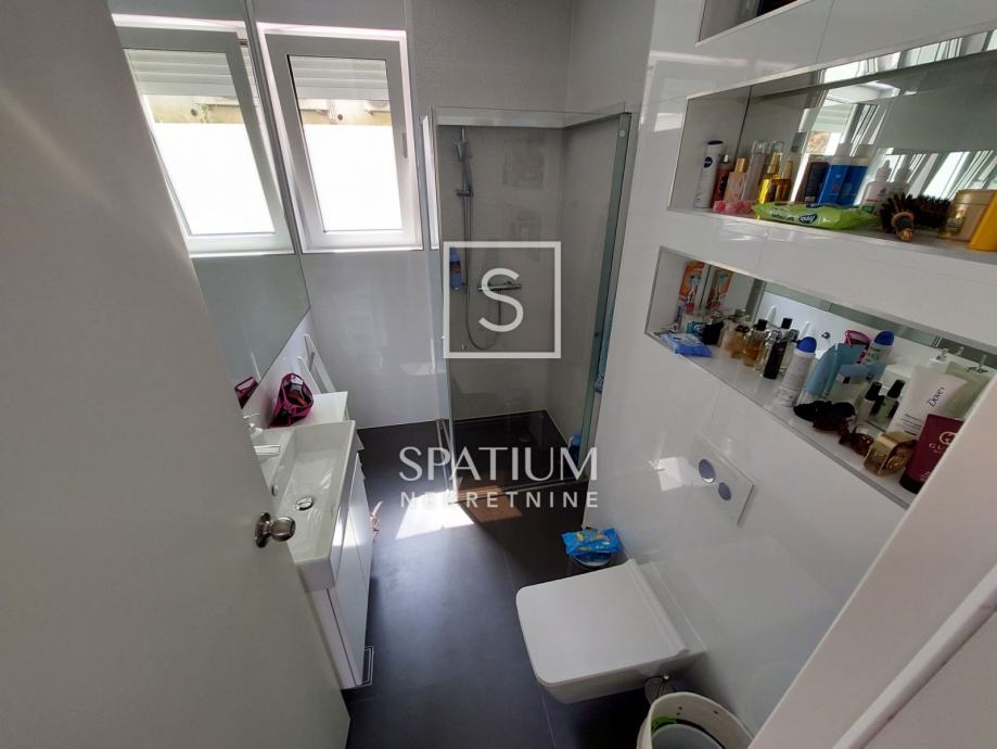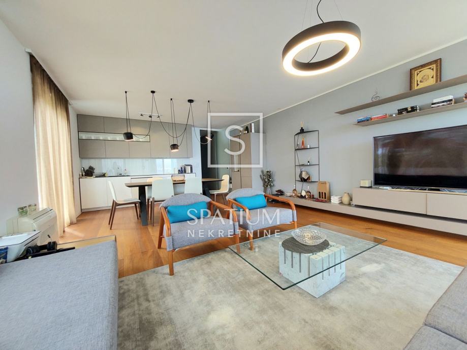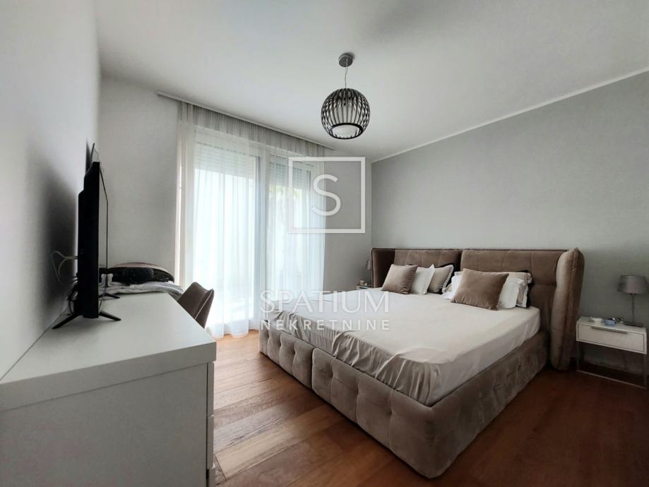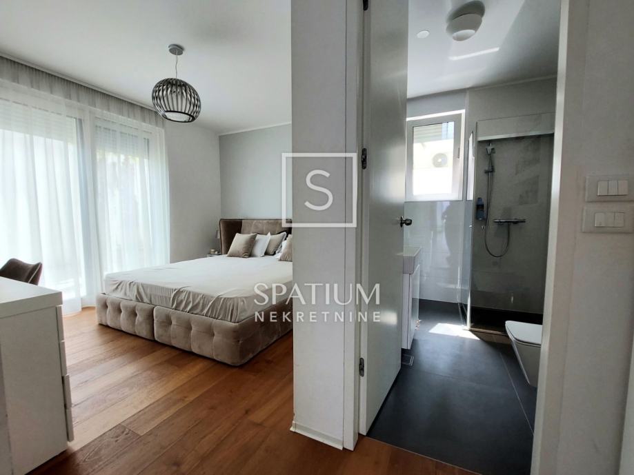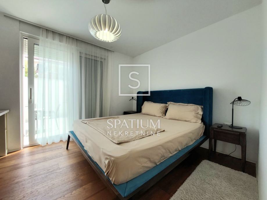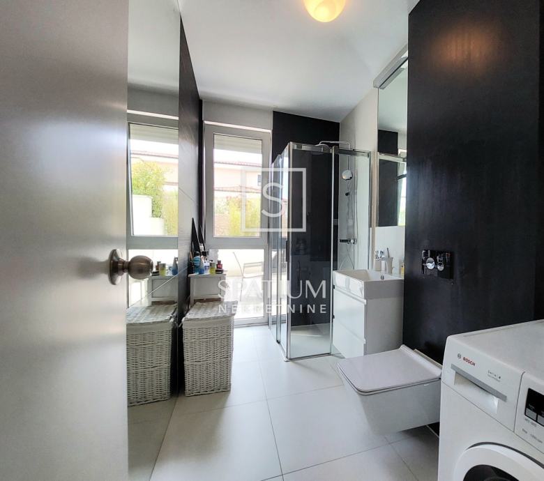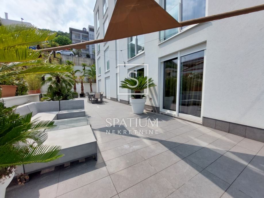 OPATIJA, u luksuznoj novijoj zgradi sa bazenom , imamo u ponudi apartman površine 113,19 m2. Sastoji se od ulaznog hodnika, dvije spavaće sobe, dvije kupaone te velikog dnevnog boravka sa kuhinjom i blagovaonom. Južno orijentiran dnevni dio povezan je sa terasom sa koje se dolazi do bazena. Okućnica je površine 91,42m2 a proteže se uz sve prostorije stana. Zgrada je vrlo kvalitetne gradnje i na odličnoj lokaciji u blizini centra Opatije. Apartmanu pripadaju dva parkirna mjesta u garaži i ostava.