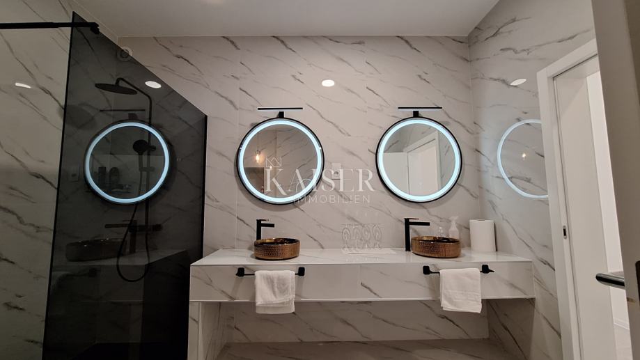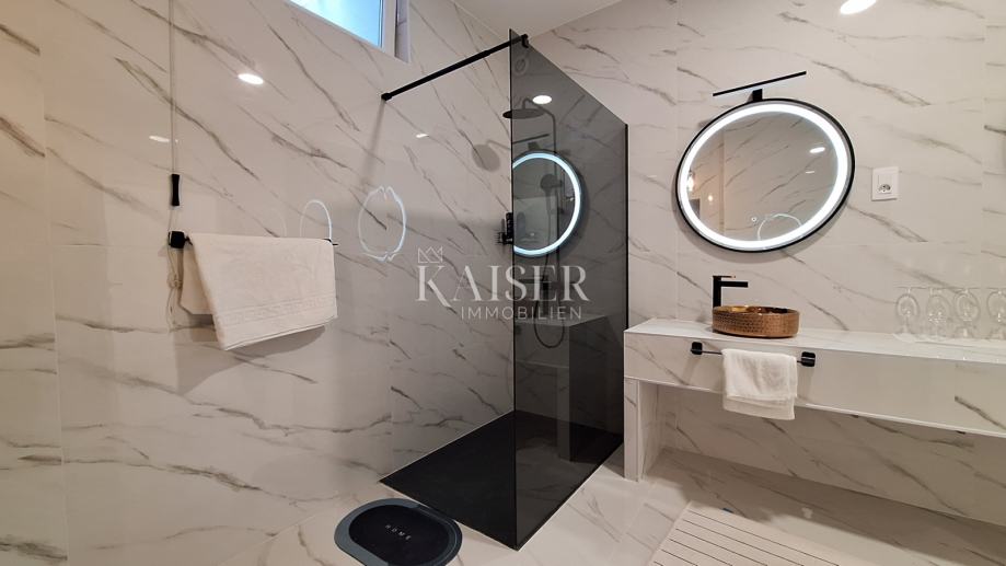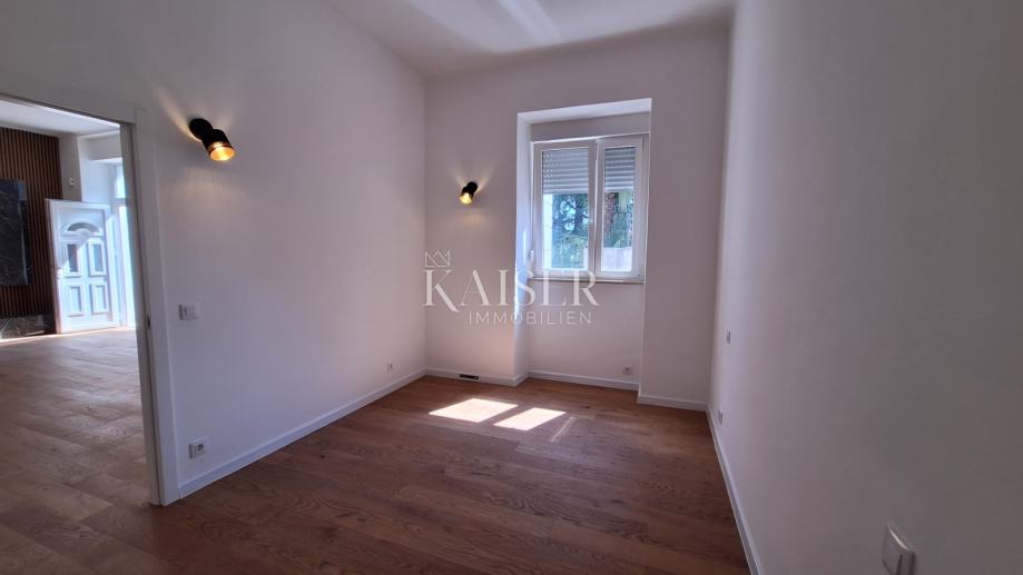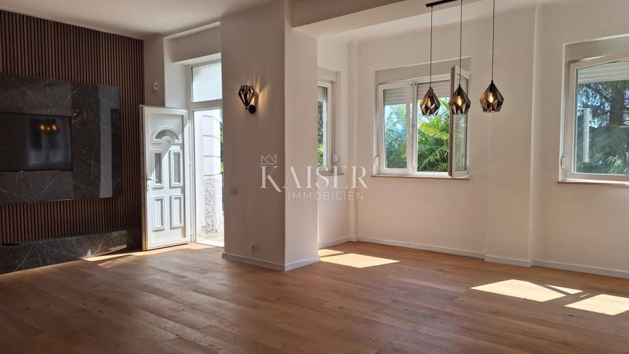 Kaiser-immobilie u svojoj ponudi nudi novo adaptirani stan u prizemlju zgrade smještene u blizini centra Opatije. Stan se prostire na 152 metra kvadratna i sastoji se od tri spavaće sobe, dnevnog boravka spojenog s kuhinjom, dvije moderno uređene kupaonice, hodnika i ostave.