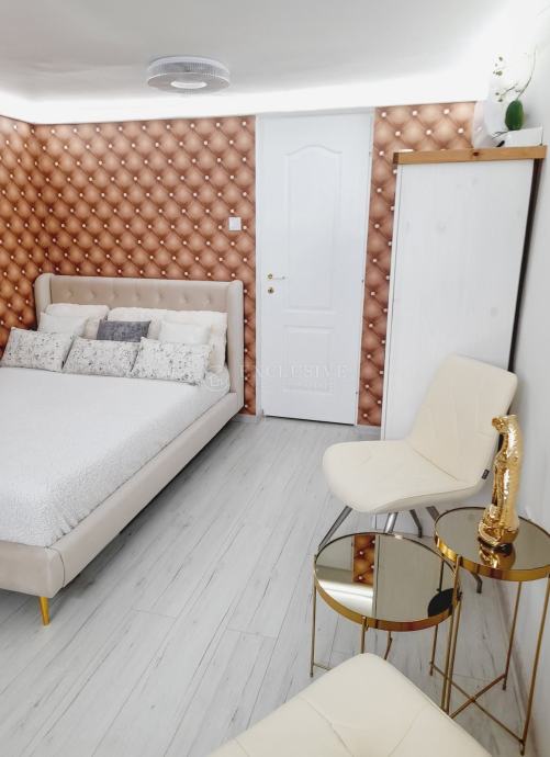 The apartment has a three-bedroom layout with a living room, is completely furnished and equipped with designer furniture and Bosch appliances. Heating and cooling are solved with four air conditioners-inverter units. All three bedrooms have a view of the sea. The roof of the villa was changed ten years ago.