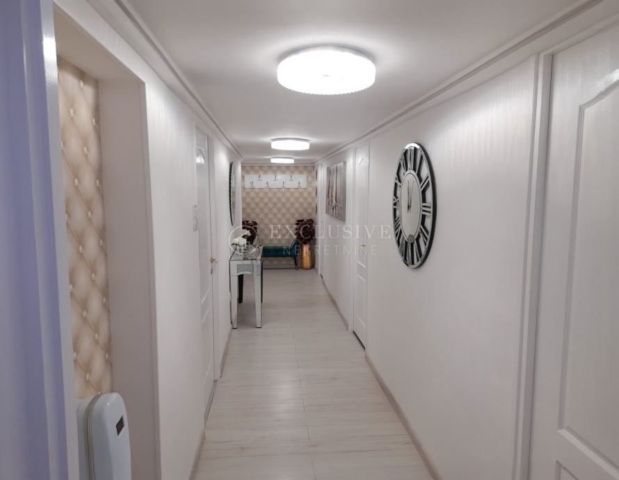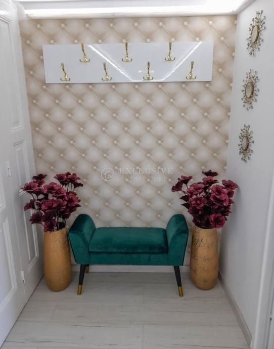 Stan je po rasporedu trosoban s dnevnim boravkom, kompletno je uređen i opremljen design namještajem i Bosch uređajima.Grijanje i hlađenje riješeno je sa četiri klima-inverter uređaja.Sve tri spavaće sobe imaju pogled na more.Krov ville je promijenjen prije deset godina.