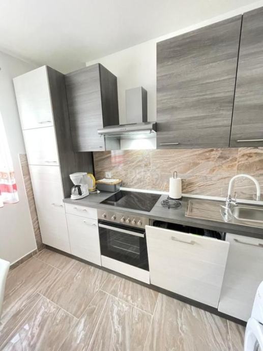 Prodajemo ovaj lijepi i kompletno uređen stan na odličnoj i mirnoj lokaciji udaljen svega par minuta pješice do mora i plaža. Stan je u naravi jednosobni koji se sastoji od ulaznog hodnika, kuhinje s blagovaonicom, kupatilom i jednom spavaćom sobom s pogledom na more, sveukupne stambene površine od 34m2. Nekretnina bez ikakvih dodatnih ulaganja spremna za novog vlasnika, čisto i uredno vlasništvo.