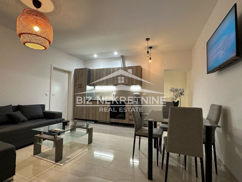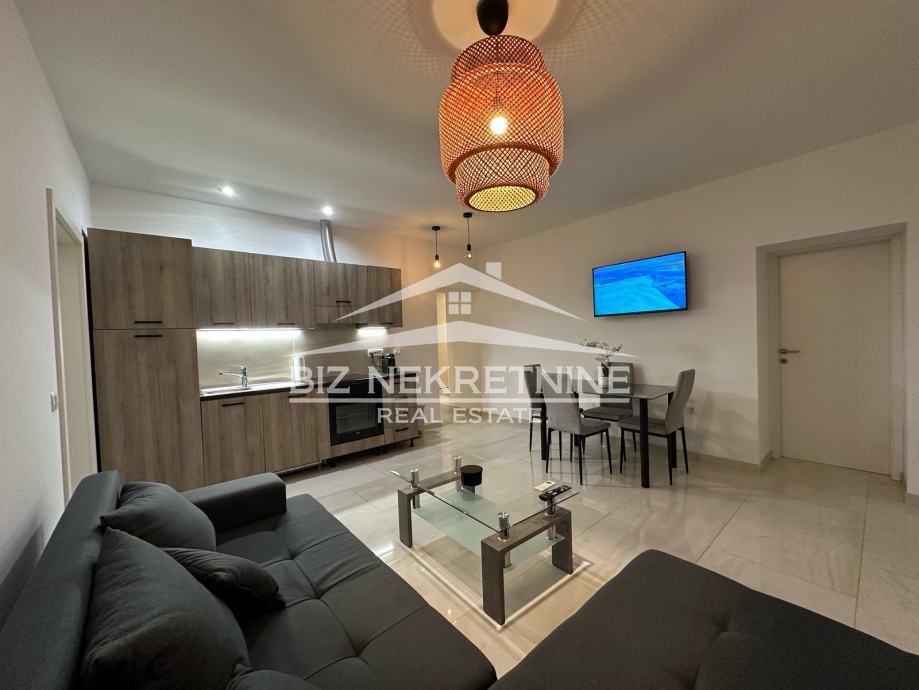 Stan je novo namješten i u potpunosti adaptiran, te spreman za useljenje bez dodatnih ulaganja. Sastoji se od dvije spavaće sobe, dnevnog boravka, kuhinje, kupaonice, ostave i terase.
