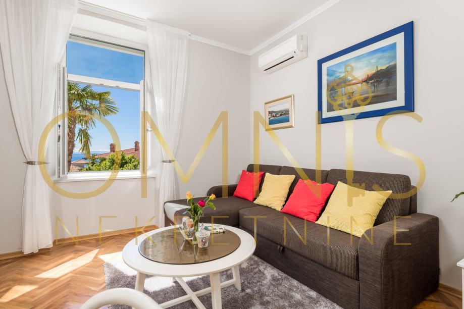 Iznajmljuje se stan u staroj Villi u centru Opatije, južne orijentacije, manje od 100 m od mora i šetnice lungomare, 300 m od centra.