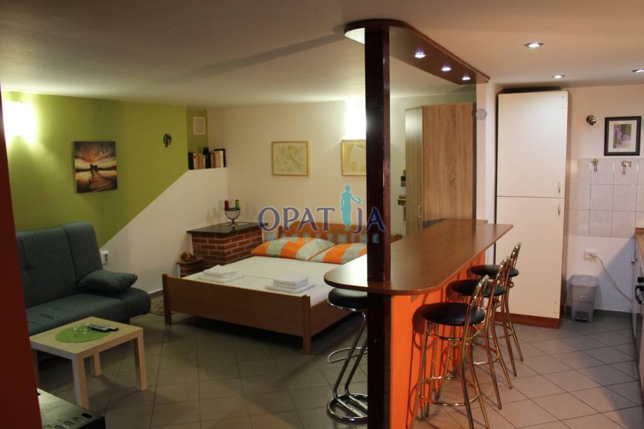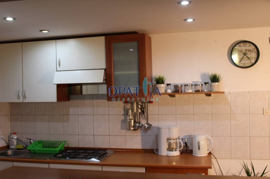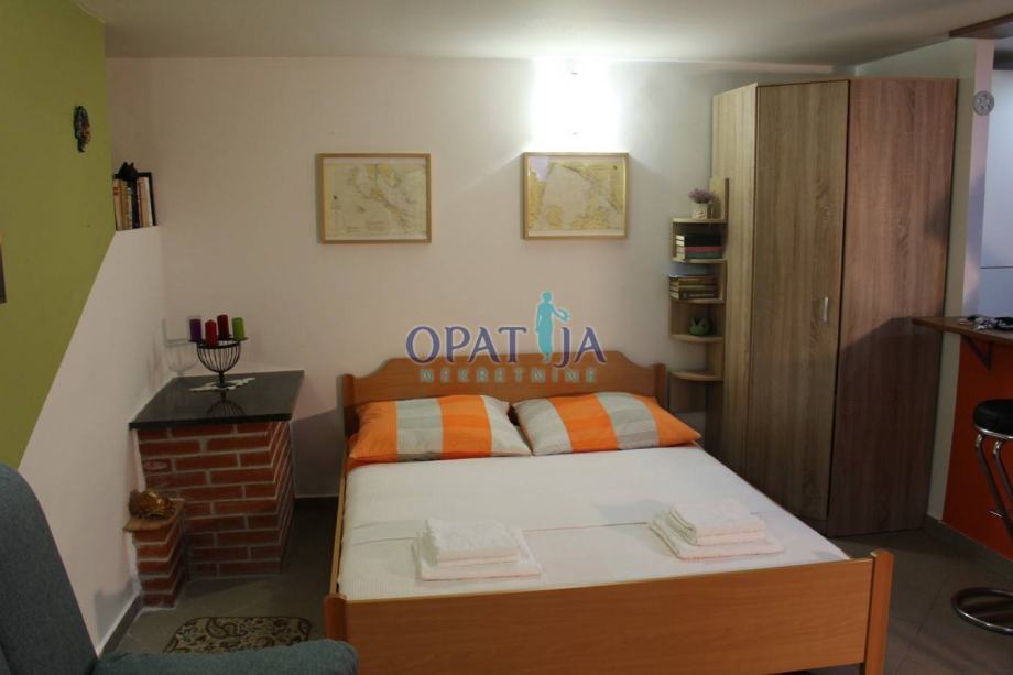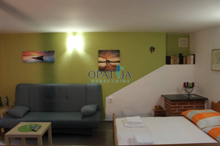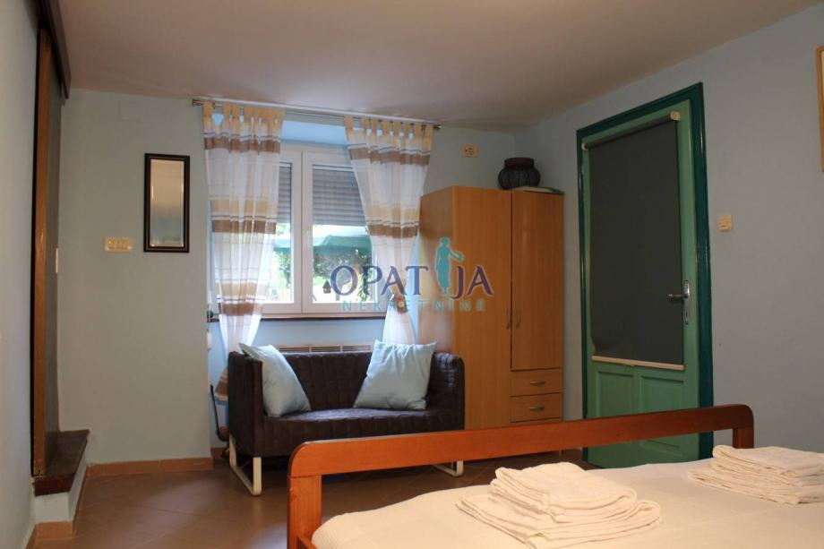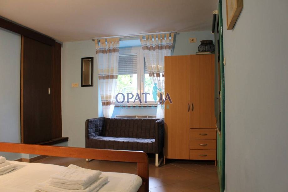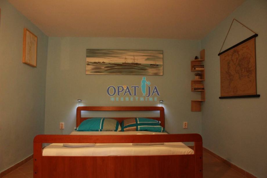 Stan u centru Opatije smješten u prizemlju stare vile sastoji se od dvije sobe, kuhinje sa blagovaonom, kupaone. Stan ima na korištenje i okućnicu od 70 m2. Odlična nekretnina za odmor.