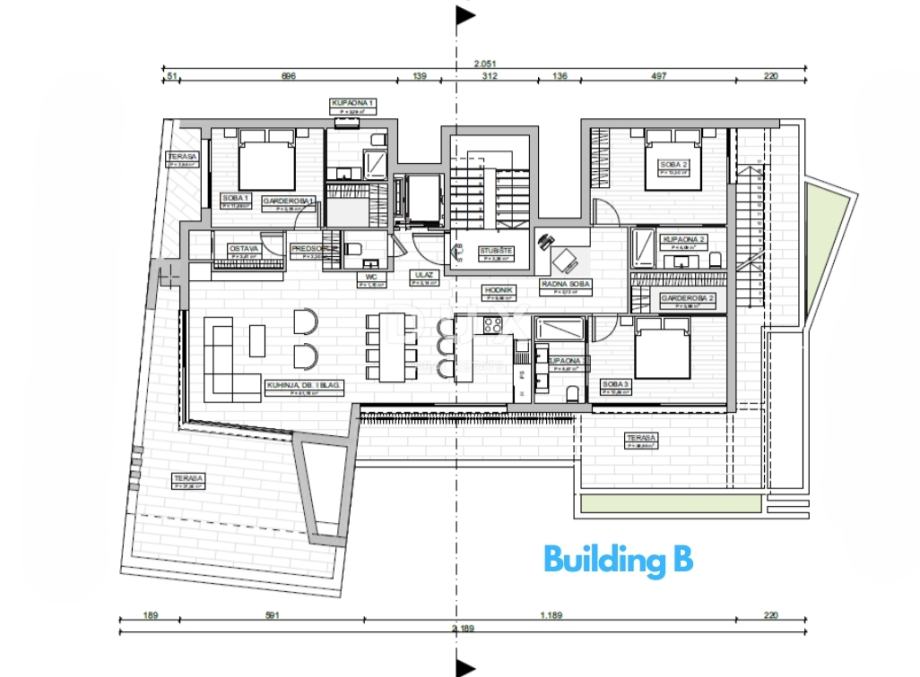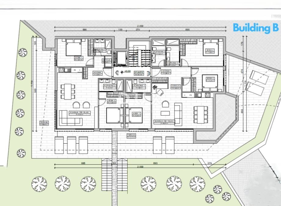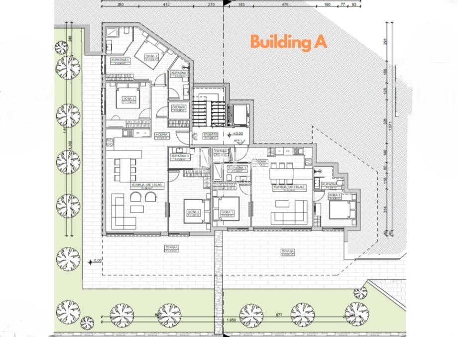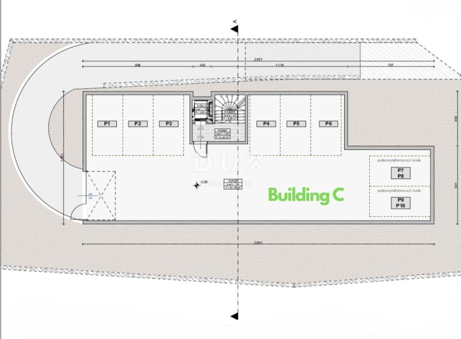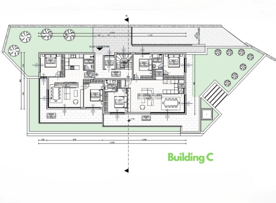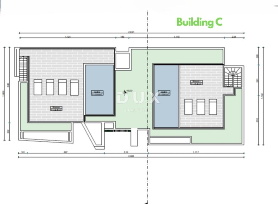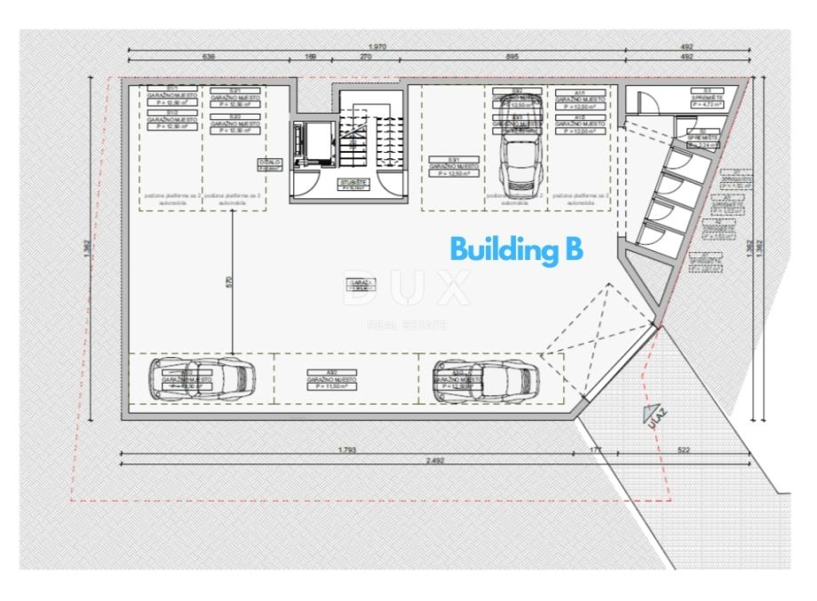 Površina gradilišta iznosi približno 800 do 880 m², a već postoji plan parcelacije. Na svakom zemljištu može se izgraditi zgrada sa šest luksuznih stanova s garažom, terasama i bazenima. Sveukupno, prodajna površina iznosi otprilike 650 m² x 3 gradilišta = 1950 m² prodajnih kvadrata. Na ovim pozicijama, umjesto stanova, mogu se izgraditi i tri raskošne vile s bazenima. Za gradnju stanova već postoje idejna rješenja (vizualizacije).