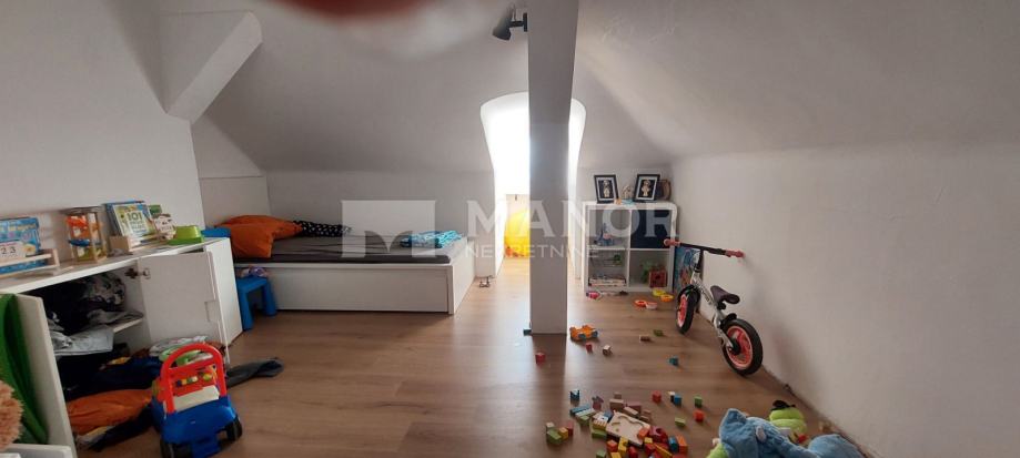 Stan se nalazi u visokom potkrovlju, a sastoji se od tri spavaće sobe, dnevnog boravka, kuhinje, kupaonice, toaleta, hodnika