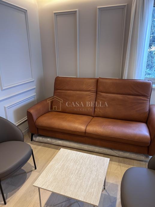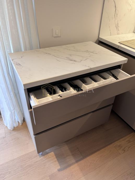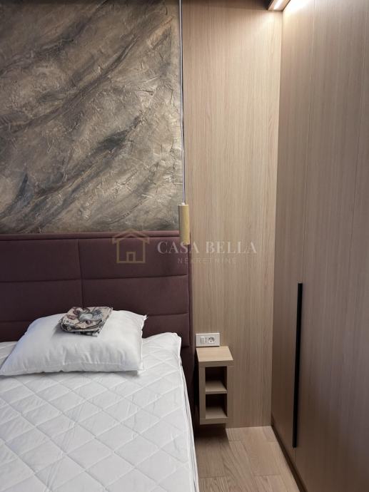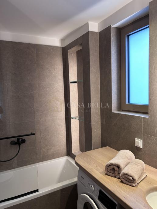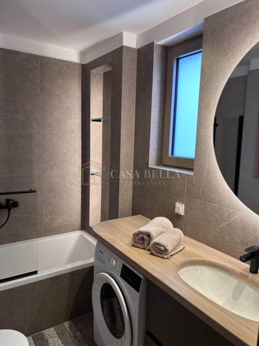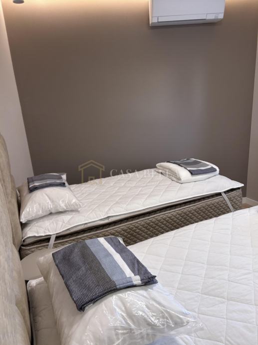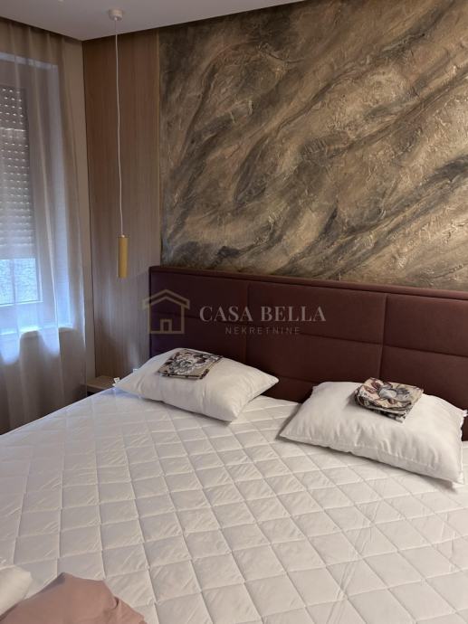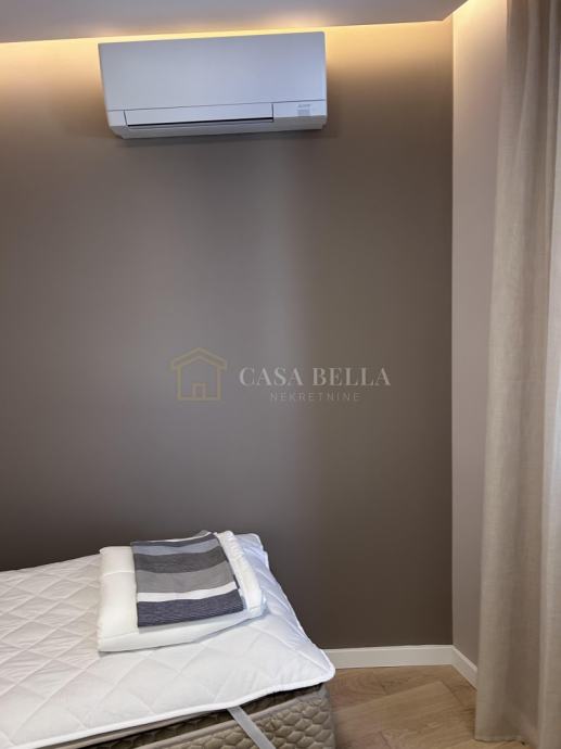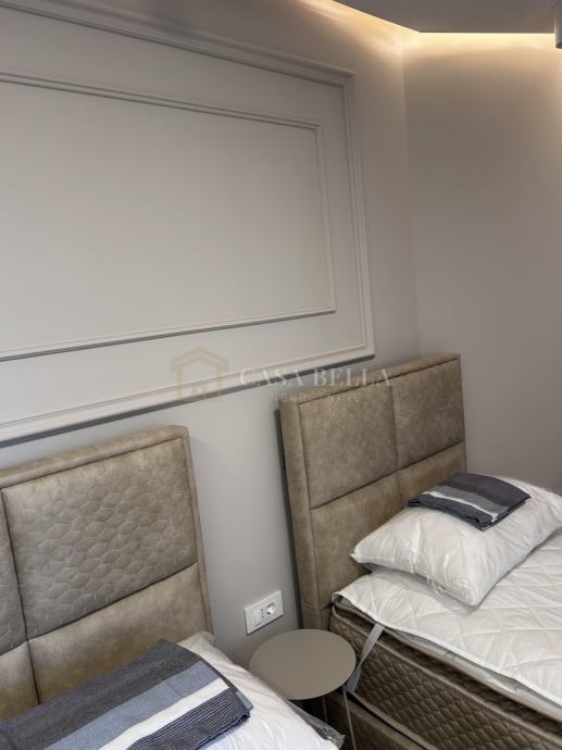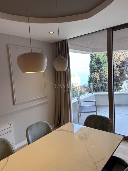 Casa Bella iz ponude izdvaja luksuzan stan u središtu grada Opatije. Smješten je samo 150 metara od mora, plaže i šetnice Lungo Mare, ali je položaj takav da omogućuje posvemašnji mir -nema buke, a pogled je prvorazredan. Stan se nalazi u novogradnji koja ima ukupno devet stanova. Posve je nov i nije bio u uporabi. Napravljen je po najvišim standardima i uz uporabu isključivo prvorazrednih materijala. Stan ima dvije sobe s dvjema en suite kupaonicama, ulazni hodnik, dnevni boravak s kuhinjom i blagovaonicom iz koje se izlazi na prostrani i natkriveni balkon. U prizemlju se nalazi prostrana garaža s parkirnim mjestom koje pripada stanu i široka ostava. Iz ovoga se prostora izravno dizalom dolazi u stan.