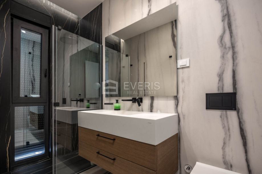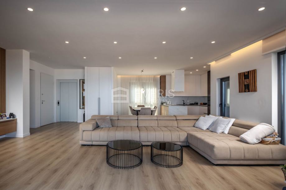 Luksuzni penthouse 3S+DB potpuno namješten i vrhunski opremljen s prostranim balkonom i pogledom na more, u luksuznoj novogradnji s bazenom i garažom u centru Opatije, svega 200 m od mora i centra.