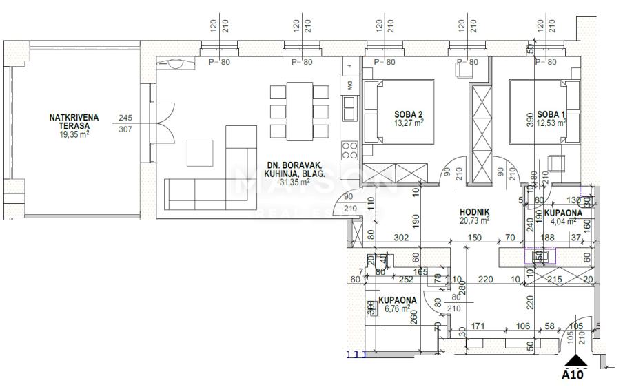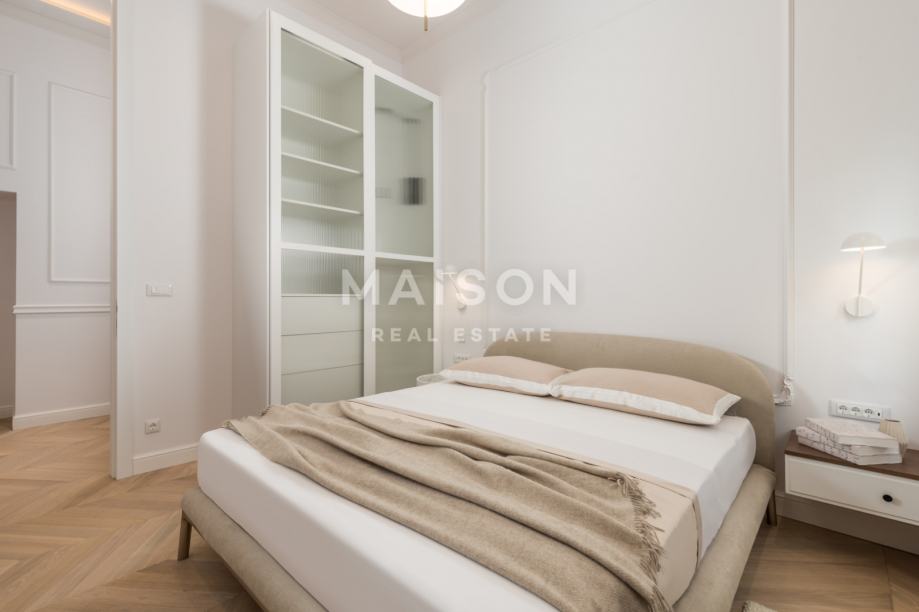 Stan se nalazi na 1. katu i obuhvaća hodnik, dvije kupaonice, dnevni boravak s kuhinjom i blagovaonicom i dvije spavaće sobe ukupne površine 88,95 m² i terasa površine 19,35 m2. U kupaonicama je postavljeno električno podno grijanje, dok je u ostalim prostorijama instaliran fan-coil sustav grijanja i hlađenja koji omogućuje individualnu regulaciju temperature. Podovi su obloženi troslojnim hrastovim parketom, čime se dodatno naglašava toplina i elegancija prostora, dok drvena stolarija vjerno prati povijesni karakter zgrade te osigurava odličnu toplinsku i zvučnu izolaciju.