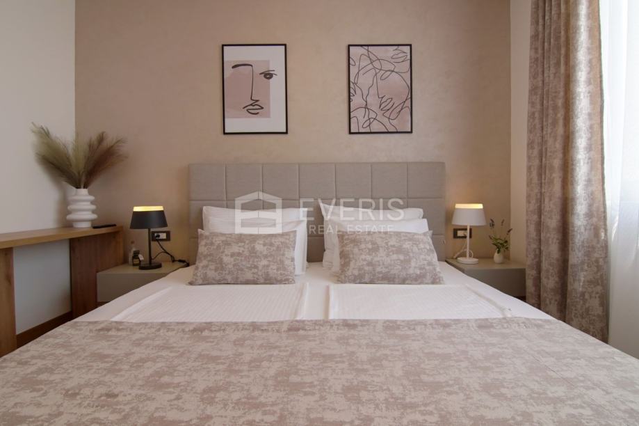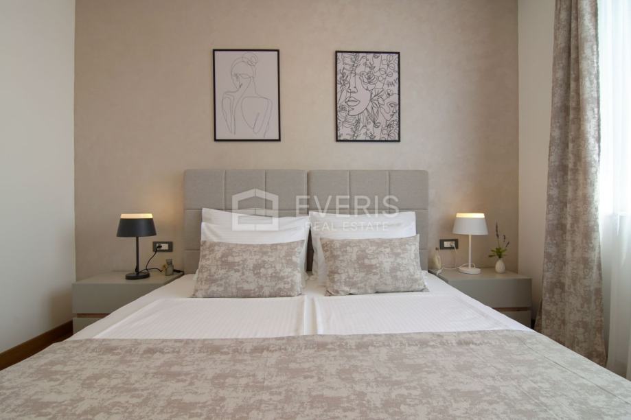 Odlična i vrlo rijetka lokacija u užem dijelu centra grada, blizina mora - plaže, poznate šetnice Lungo mare (100 m) i svih gradskih sadržaja a stan je kompletno opremljen.