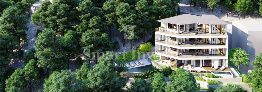 Predstavljamo vam novi luksuzni stambeni kompleks s ekskluzivnim jednosobnim, dvosobnim i trosobnim stanovima koji se mogu pohvaliti pogledom na more, suvremenim arhitektonskim stilom, modernim luksuznim interijerima i najnovijom tehnologijom. Smješten na zelenom brežuljku, nekoliko minuta hoda do centra Opatije i plaža, ovaj moderan kompleks se odlikuje suvremenim arhitektonskim linijama koje se prirodno uklapaju u okoliš. Povijesni parkovi, šetnice uz more i šumu, teniski klub i pristup pješačkim stazama su unutar pješačke udaljenosti.