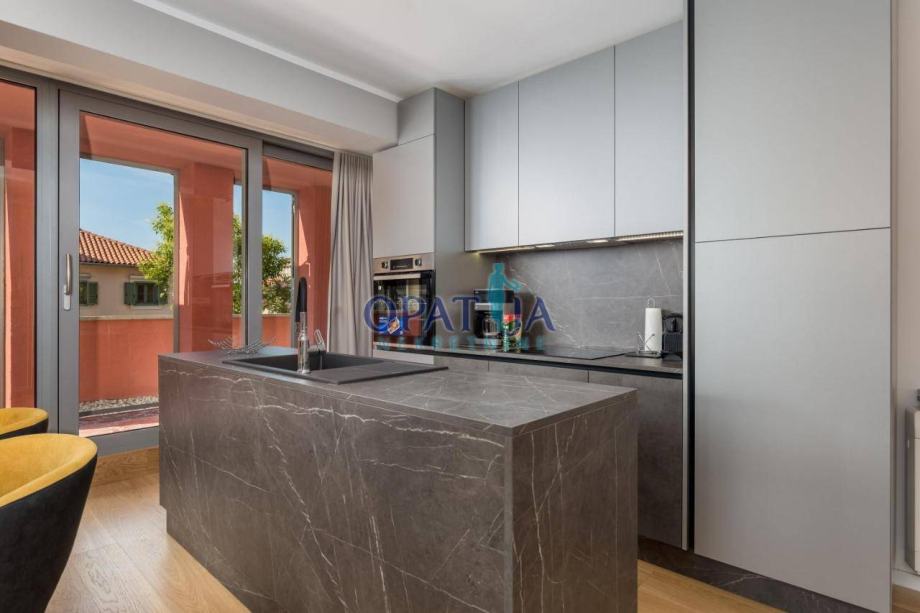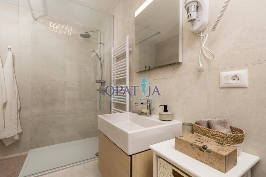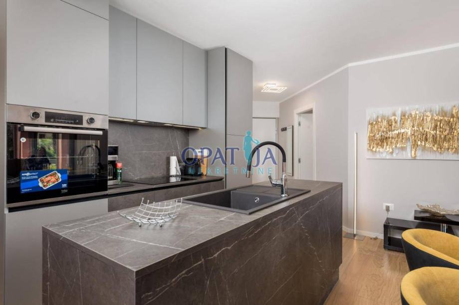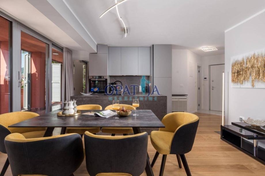 Opatija-centar stan u visokom prizemlju moderne stambene zgrade iz 2021. godine od ukupno 16 stanova.