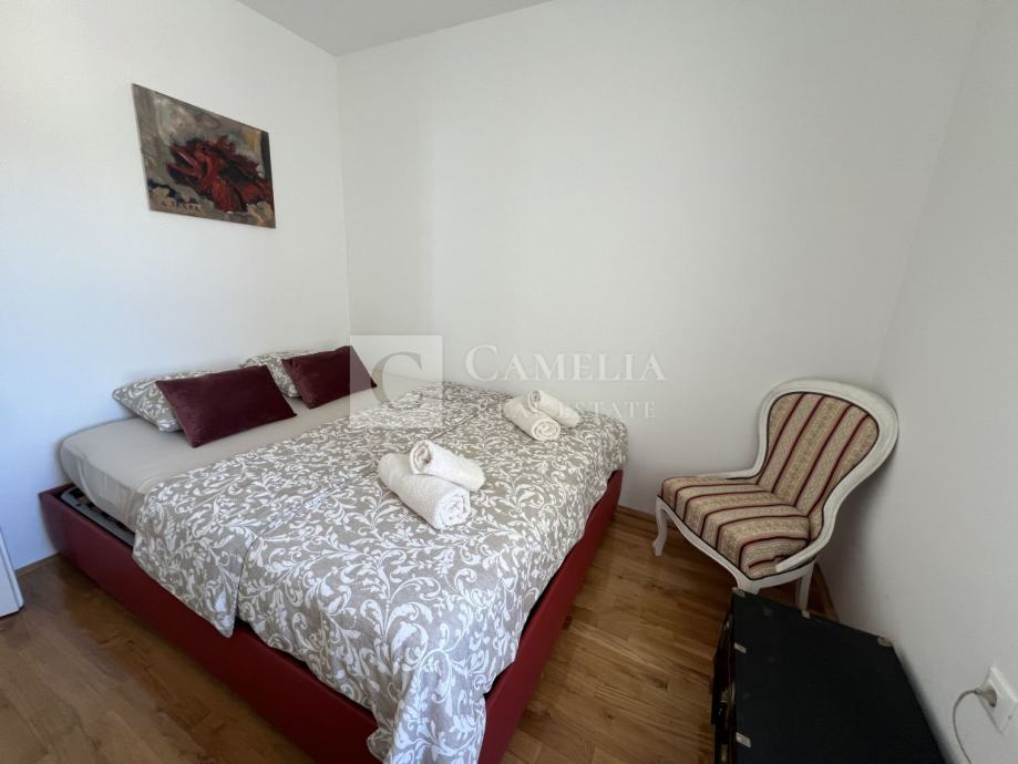 Dvije velike spavaće sobe ( jedna ima izlaz na balkon) i jedna mala spavaća soba te dvije kupaone (u velikoj podno grijanje) čine ostatak stana.