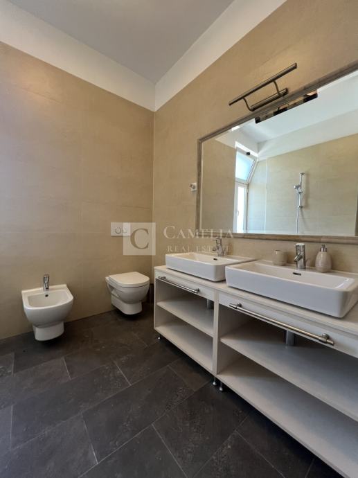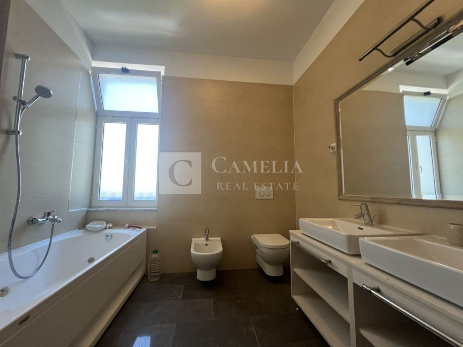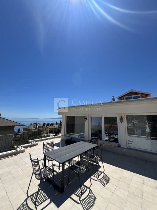 Ovu izuzetnu nekretninu odlikuje vrhunska mikro-lokacija samog centra Opatije, sjajni pogledi na Kvarner iz većeg dijela stana, veliki vanjski prostori balkoni i terasa te vlastito parkirno mjesto i ima našu toplu preporuku za sve zaljubljenike predivne Opatije.