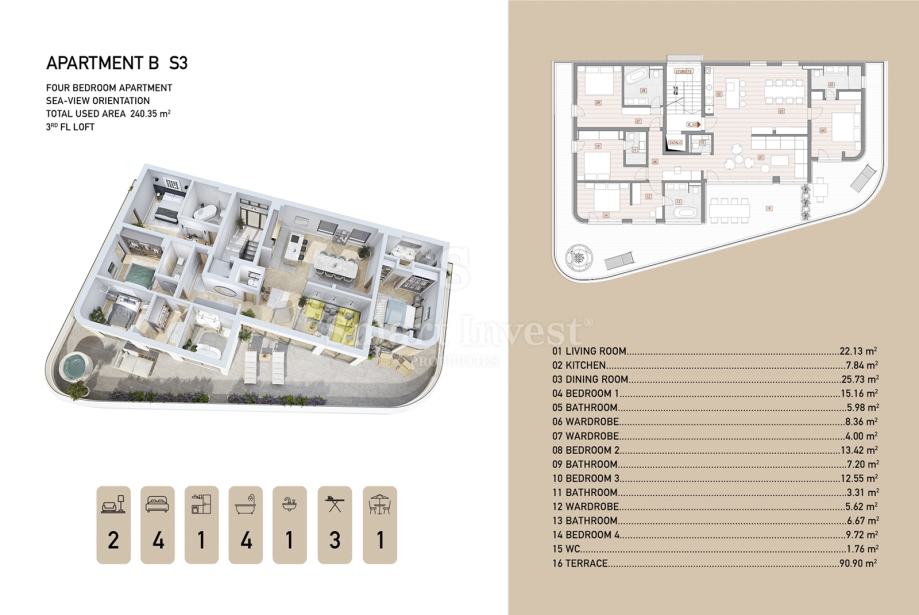 • ukupna površina stana: 240.35 m2