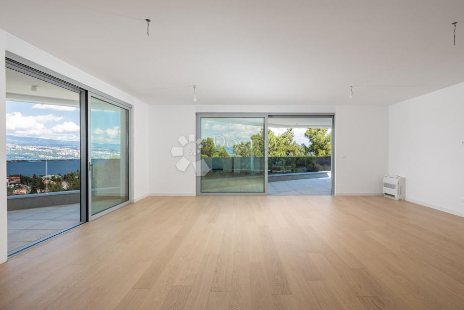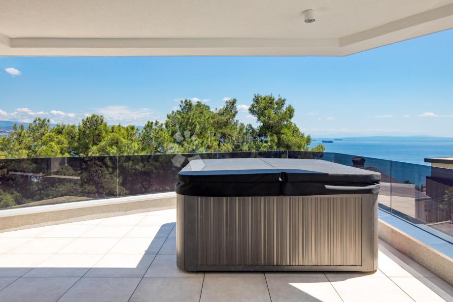 ** Terasa i balkon: Uživajte u prostranim vanjskim prostorima s nevjerojatnim pogledom na Opatiju i Kvarner, idealno za opuštanje i večernja druženja.
