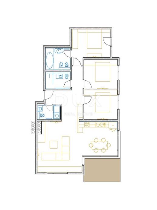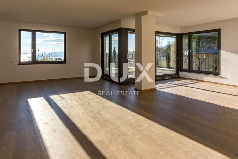 DUX predstavlja odličnu priliku za kupnju novog stana s terasom u centru Opatije. Stan se nalazi na 2. katu nove zgrade i pripadaju mu dva parkirna mjesta u garaži. Veličina stana iznosi 125m² s koeficijentima, a sastoji se od hodnika, open space dnevni boravak s kuhinjom, tri spavaće sobe, predsoblja, dvije kupaonice i WC-a. Ovaj stan ističe osunčana loggia (balkon) s fantastičnim pogledom te spremište u suterenu.