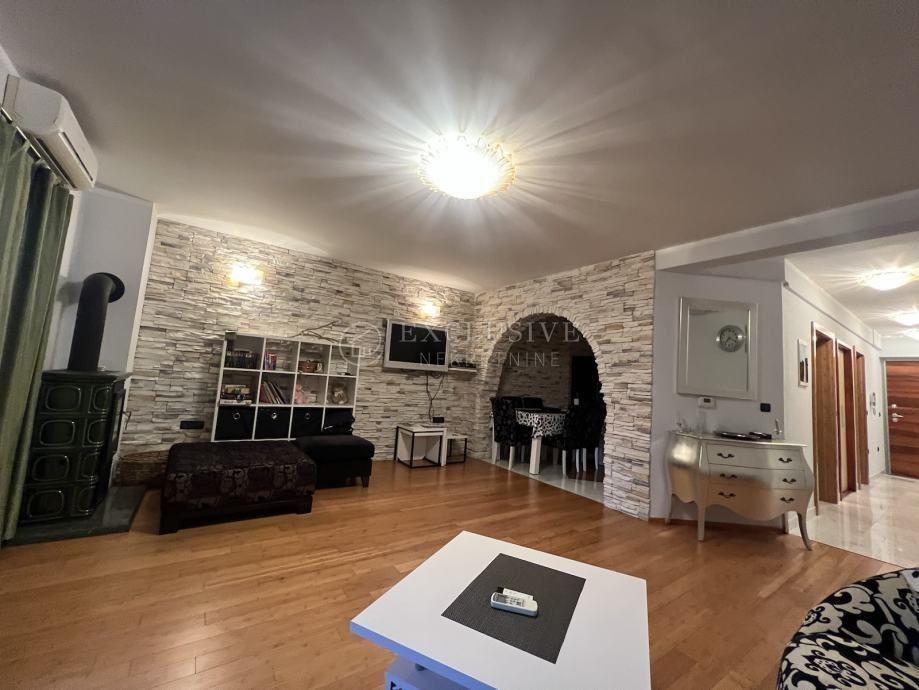 Stan s ugodnim rasporedom: hodnik, garderoba, kuhinja s blagovaonicom, dnevni boravak, dvije spavaće sobe, kupaonica i dva balkona.