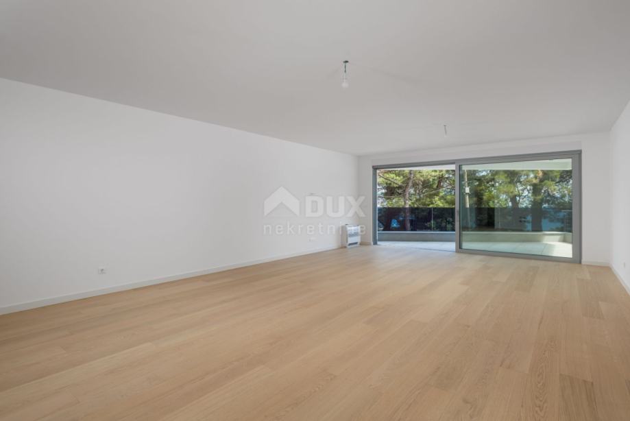 Stan se nalazi u prizemlju ekskluzivne novogradnje i sastoji se od dvije spavaće sobe, dvije kupaonice i jednog WC-a, a prekrasan open space dnevni boravak povezan je s blagovaonicom i kuhinjom te se iz cijelog prostora pruža izlaz na terasu na kojoj je moguće nesmetano uživati u prekrasnom pogledu na plavetnilo mora.