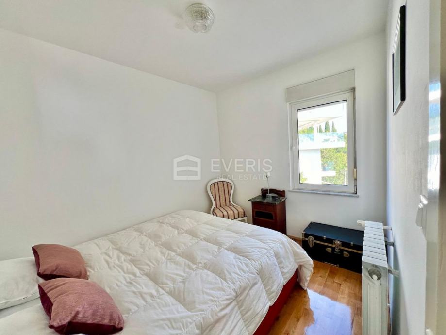 Stanu pripada 63 m2 okućnice na kojoj su raspoređena 2 parking mjesta koja će biti ograđena pomičnim lancem. Stan se nalazi 5 minuta pješke od centra Opatije.