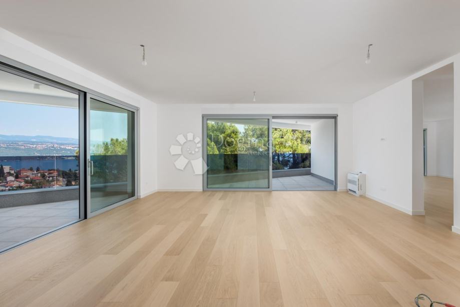 ** Balkoni: Uživajte u prostranim vanjskim prostorima s nevjerojatnim pogledom na Opatiju i Kvarner, idealno za opuštanje i večernja druženja.