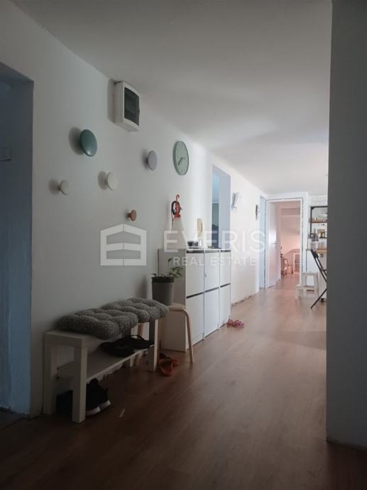 Stan se nalazi u staroj vili, u visokom potkrovlju, na svega 30-ak metara od mora, a sastoji se od: