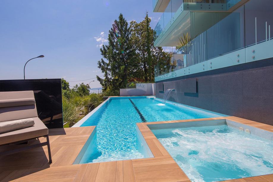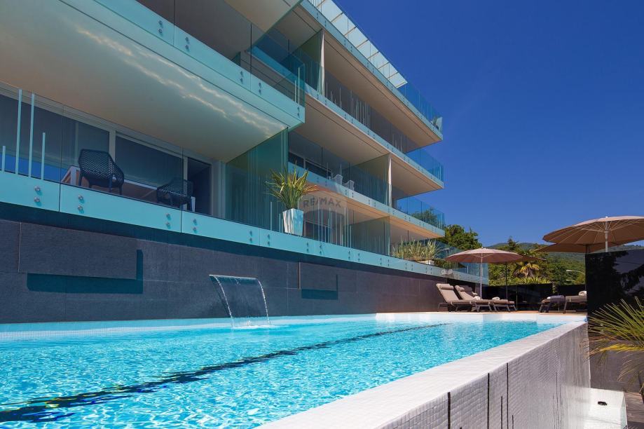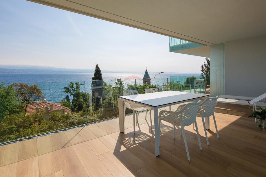 Nalazi se na 1. katu moderne zgrade sa 9 stanova i nudi izvrsnu lokaciju sa brzim pristupom centru Opatije kako autom tako i pješačkim putem.