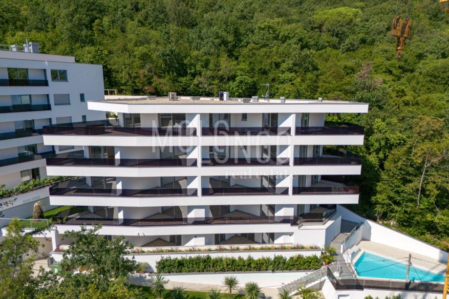 Prodaje se luksuzni stan u novogradnji s bazenom, liftom i podzemnom garažom u srcu Opatije, smješten na idealnoj lokaciji s pogledom na more.