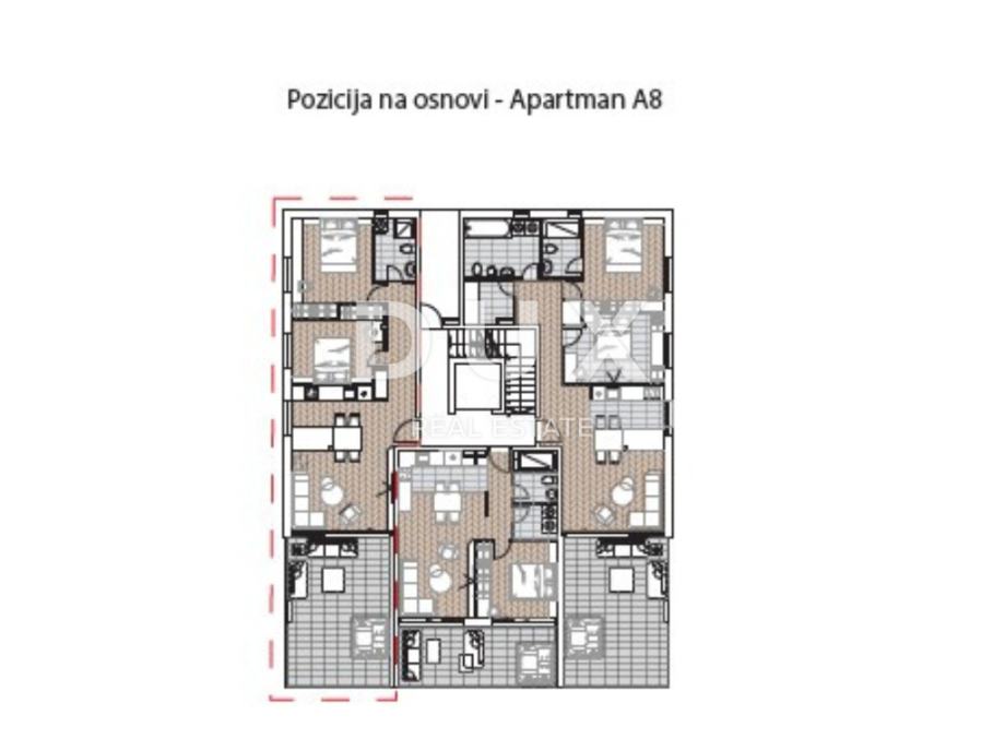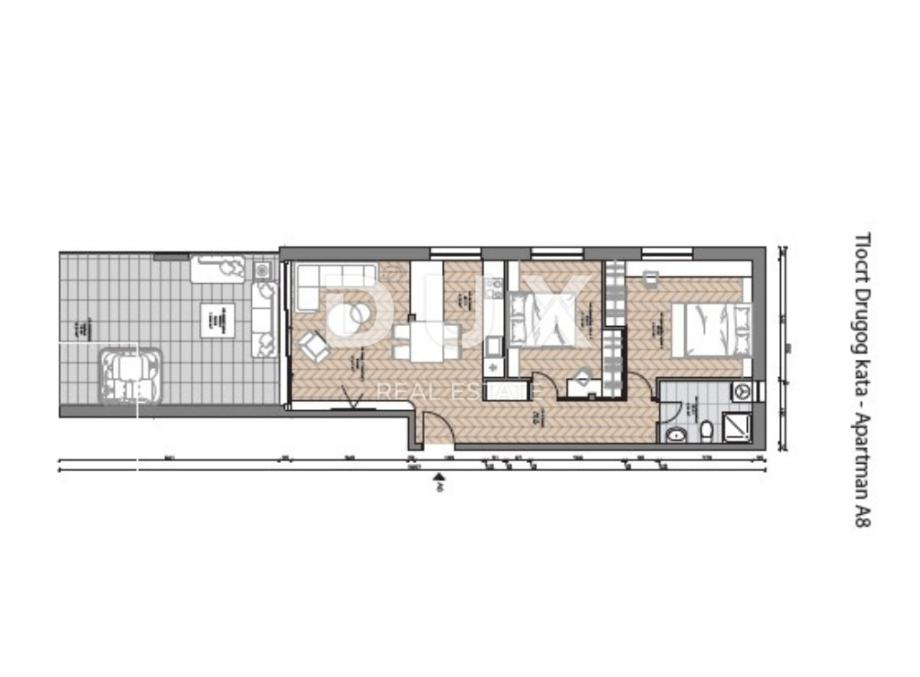 U ponudi je ekskluzivan stan A8 površine 80,77 m2 na drugom katu novogradnje iznad centra Opatije, loggiom i garažom.