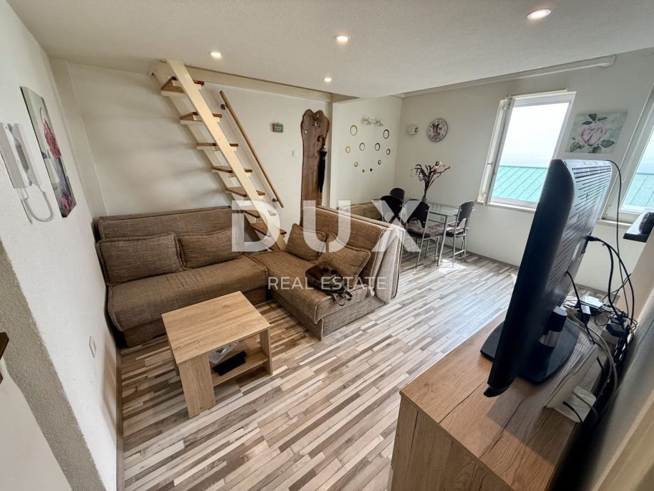 Prodajemo stan u stambenoj zgradi na četvrtom katu. Sastoji se od dnevnog boravka s kuhinjom, kupaonice s wc-om te spavaće sobe s garderobom koja je na galeriji. Stan je kompletno namješten i preuređen te se kao takav i prodaje.