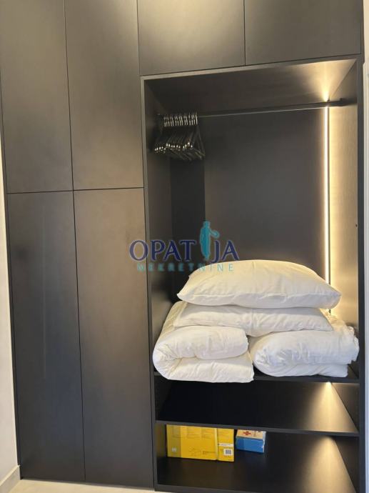 Dva balkona s djelomičnim pogledom na more omogućuju uživanje u svježem zraku i opuštajućim trenucima. Dodatne značajke stana uključuju klimatizaciju u dnevnom boravku i spavaćoj sobi, podno grijanje na struju u kuhinji, WC-u, hodniku i kupaonici za dodatnu toplinu u zimskim mjesecima, kao i dizajnerski namještaj i Bosch aparate. Prostor je optimalno iskorišten zahvaljujući ugradbenom namještaju visokog standarda.