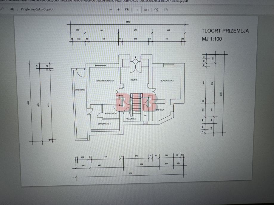 WC-a i četiri sobe na 1. katu, ukupne površine 181,73 m2, kojem pripada kao sporedni dio