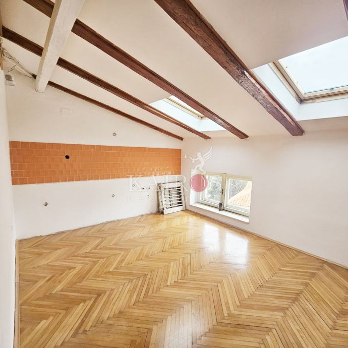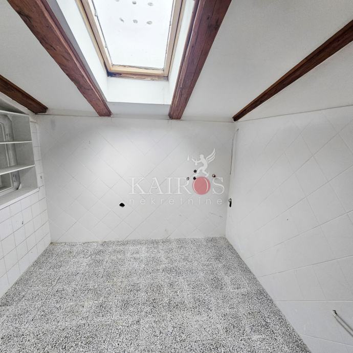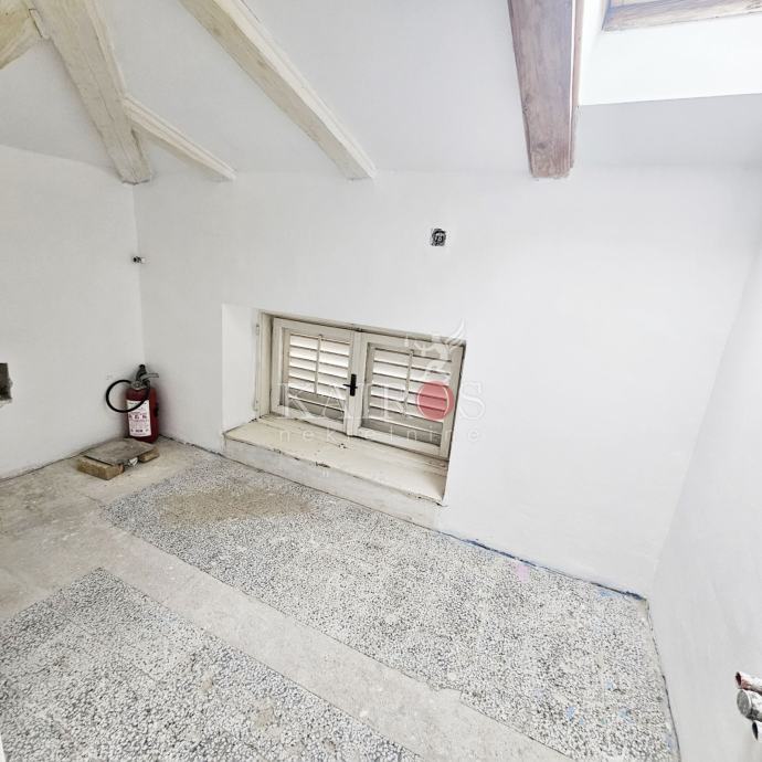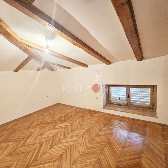 Stan se nalazi u mansardi lijepe austro-ugarske vile, ima površinu od 120 m2, u naravi je četverosoban klasičan koji se lako može podijeliti u dva ili tri stana jer stan ima tri ulaza sa stubišta zgrade. Stan je južne orijentacije i ima balkon i pogled na more. Stan je potrebno osuvremeniti. U stanu je etažno centralno na struju odnosno na drva.