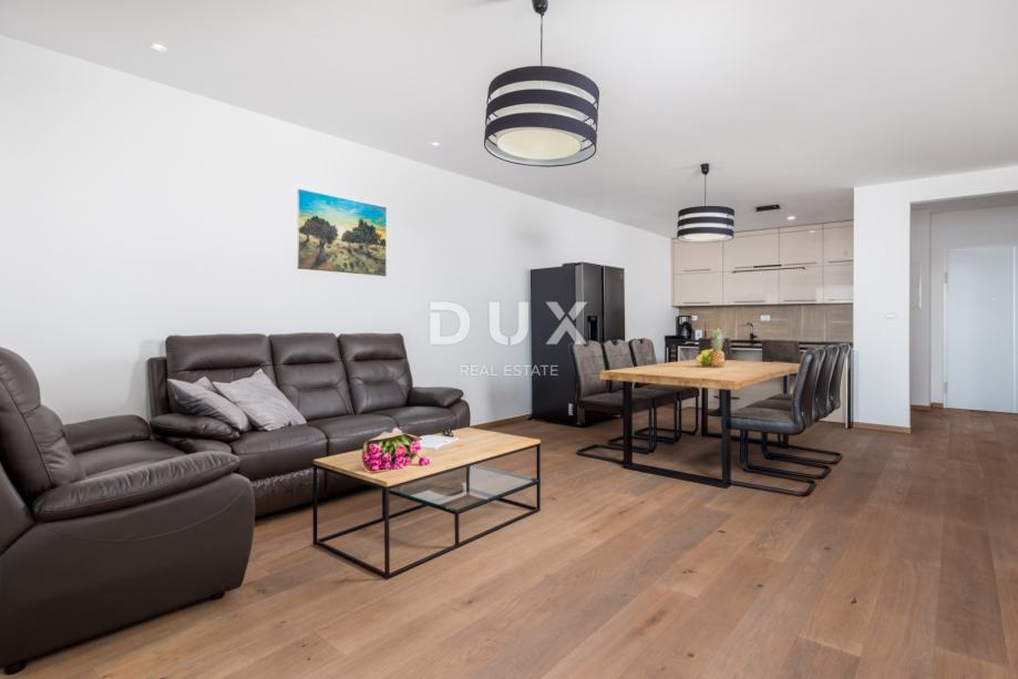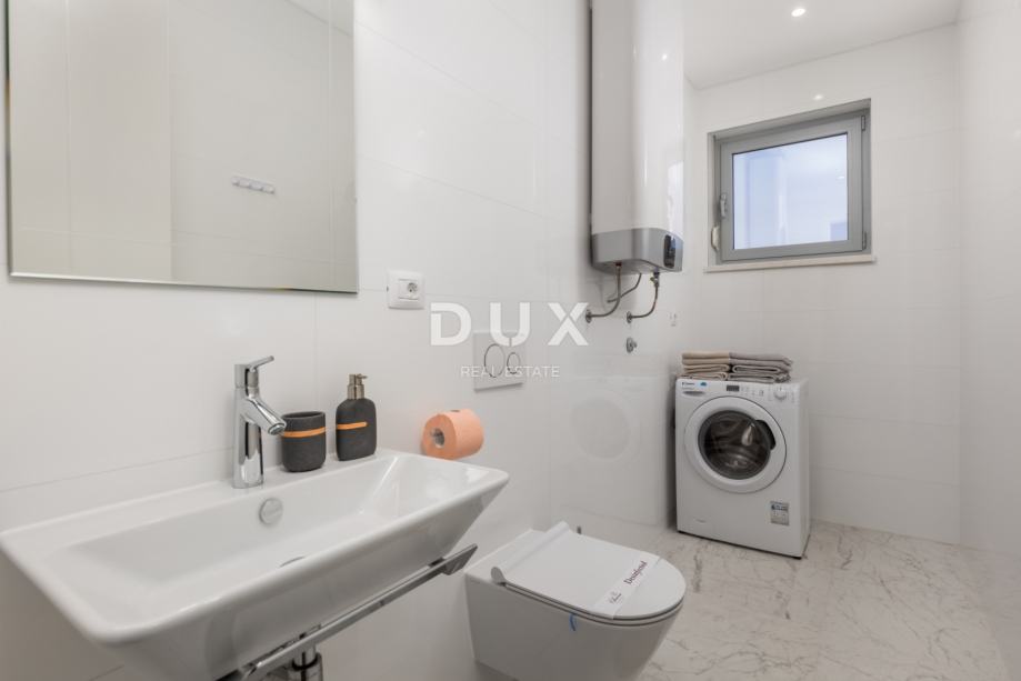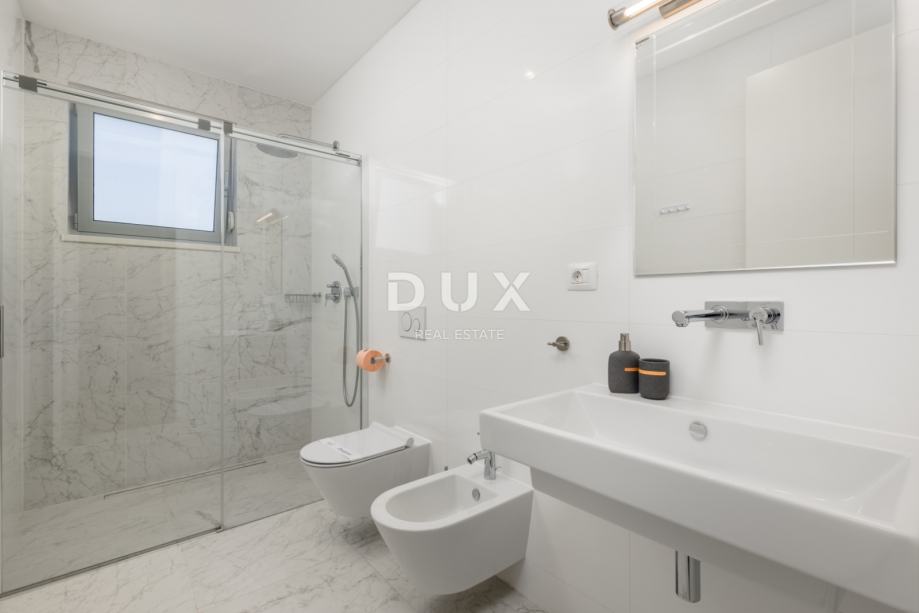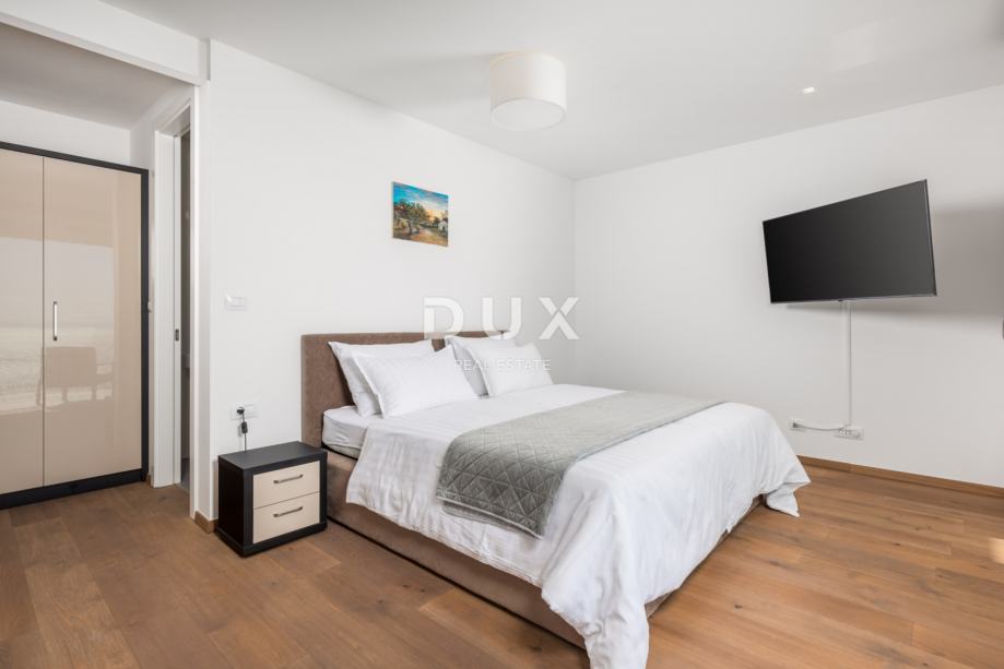 Apartman nudi 3 spavaće sobe, dvije kompletno opremljene kupaonice (en suite), veliki dnevni boravak s kuhinjom i blagovaonicom te terasu od 20m2 južno orijentiranu s predivnim pogledom na more.