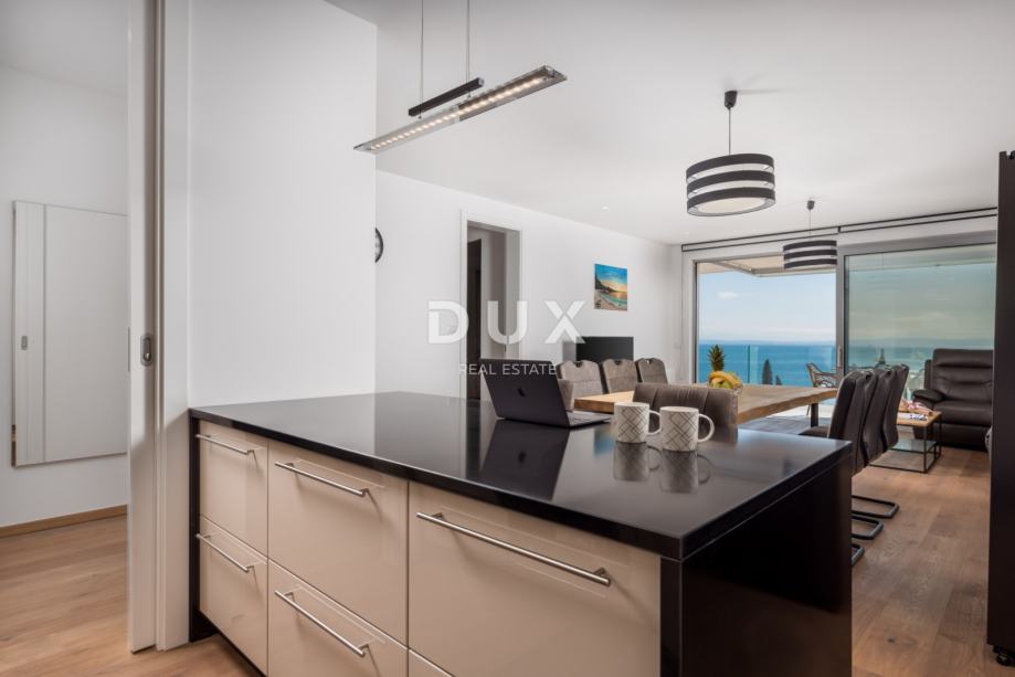 U ponudi je moderan apartman smješten u srcu Opatije, bisera Jadranskog mora, koji nudi prekrasan panoramski pogled na Kvarnerski zaljev. Ovaj stan od 135 m² savršen je izbor za zimski period, a nalazi se u mirnom i tihom susjedstvu, samo nekoliko minuta hoda od centra i plaža.