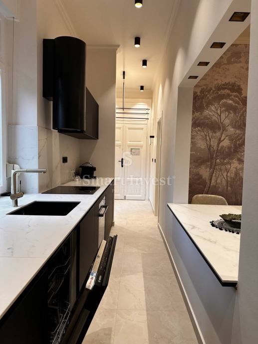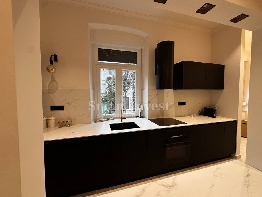 Na traženoj lokaciji, u strogom centru Opatije, nalazi se ovaj elegantan i funkcionalan stan površine 71,95 m2, savršeno pozicioniran u blizini svih sadržaja, mora i plaža. Stan je potpuno adaptiran 2024. godine i opremljen vrhunskim dizajnerskim namještajem te Bosch aparatima, pružajući moderan i luksuzan ambijent za ugodan život.