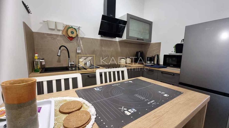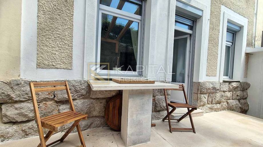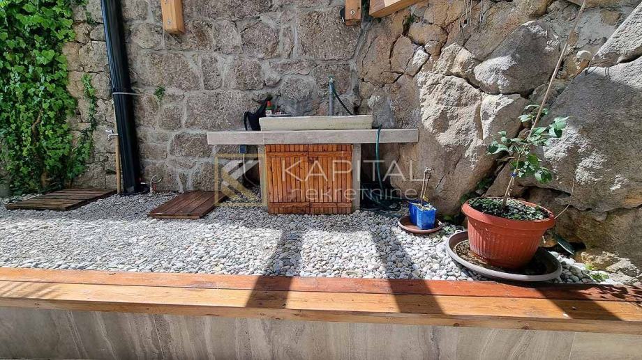U prizemlju lijepe vile, 400 m iznad kupališta Slatina nalazi se ovaj stan. Odličan raspored i maksimalna funkcionalnost. Ulazi se direktno u kuhinju s blagovaonicom. Na zapadnu stranu su dvije sobe od kojih je jedna dnevni boravak sa izlazom na krasnu terasu sa roštiljem, sunčalištem sa solarnim tušem natkriveno pergolom. Na stražnju stranu je mala funkcionalna kupaonica i jedna spavaća soba takođe sa izlazom na okućnicu. Stan je namješten i opremljen za turističko iznajmljivanje i kao takav se prodaje. Glavna prednost ove nekretnine je mirna i intimna okućnica okružena visokim zidovima stvorena za istinski odmor. Upravo je završena kompletna rekonstrukcija (sve izmjenjeno, hidroizolacija, podovi sa svim oblogama i sve instalacije, unutarnjaih vratiju, vanjske stolarije, grijanje). Za sve informacije nazovite 098/257-020