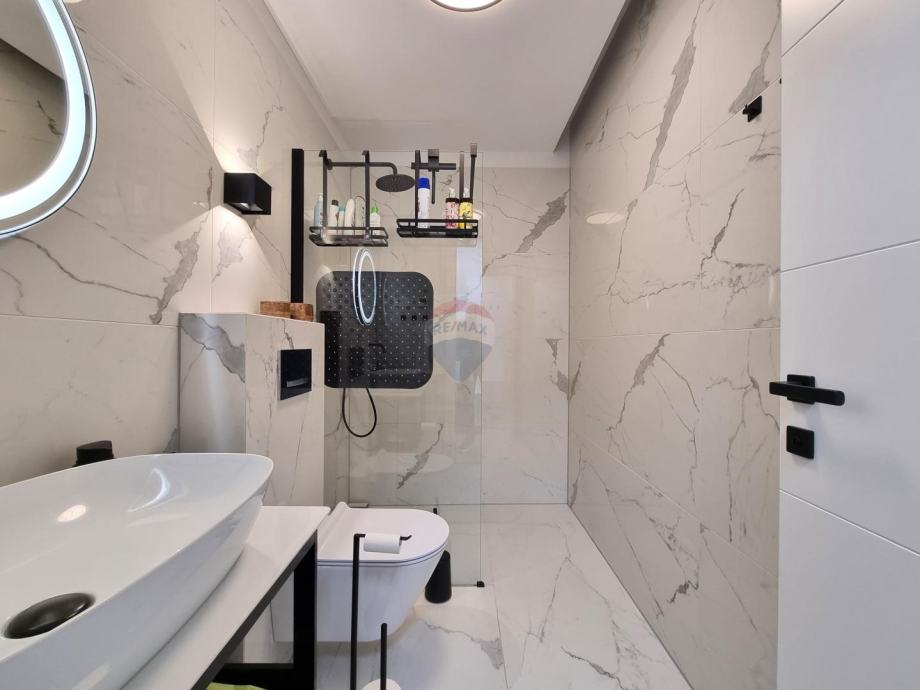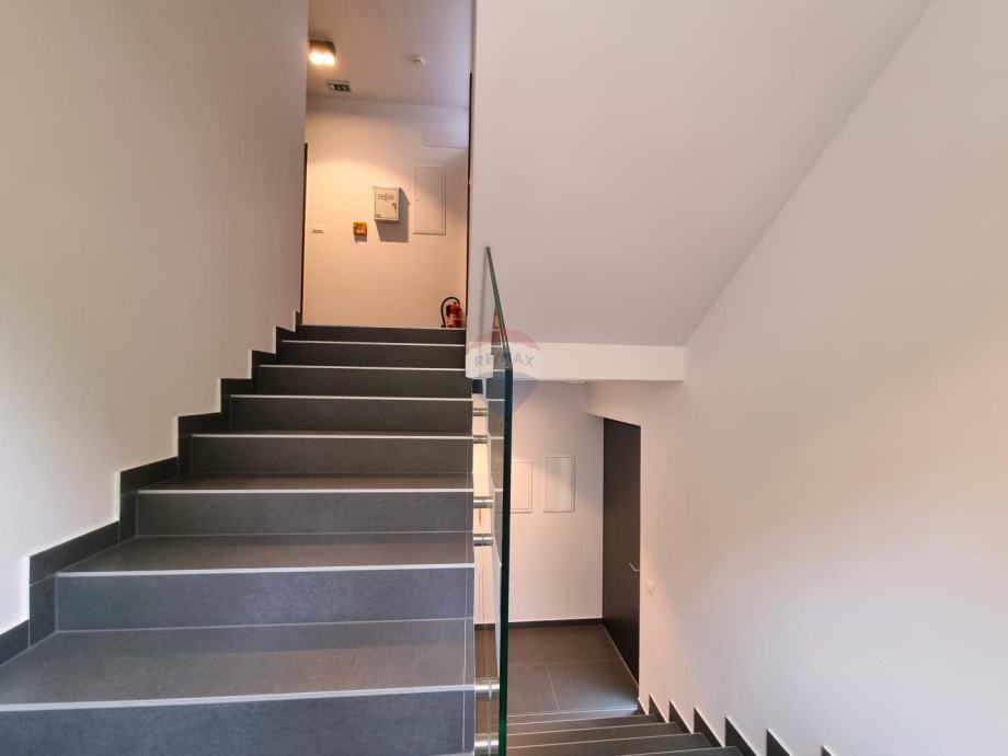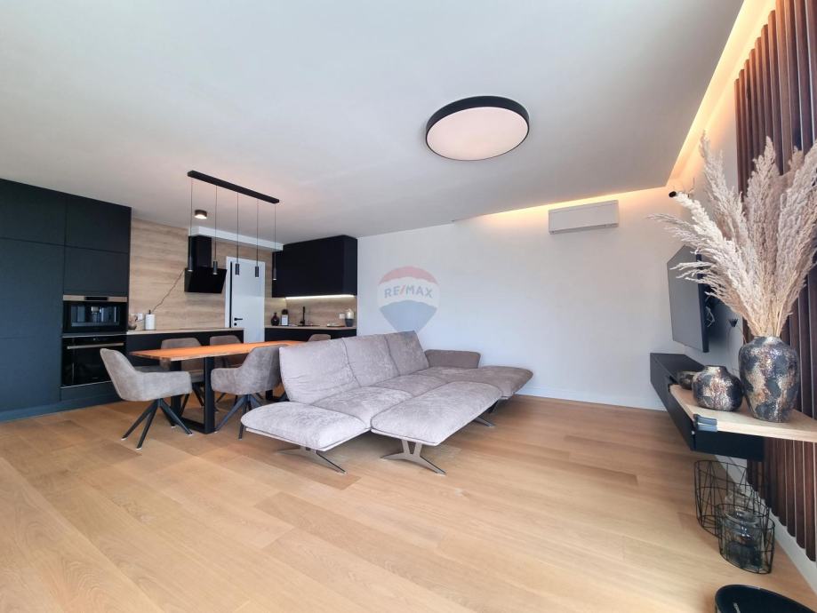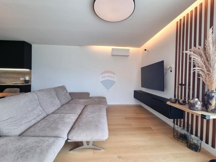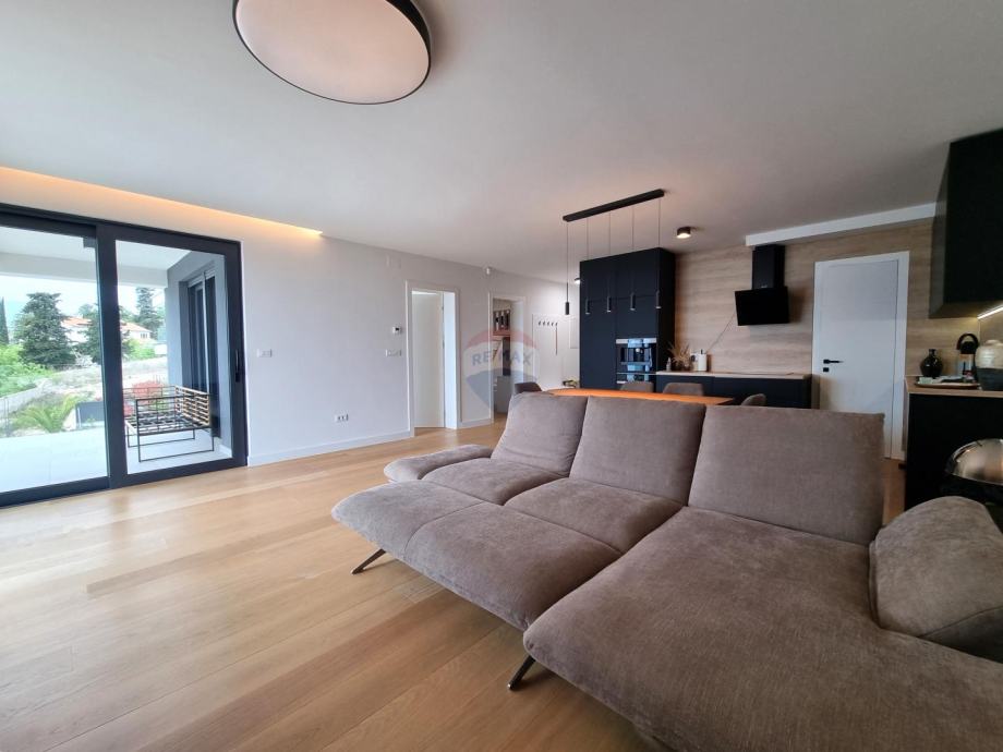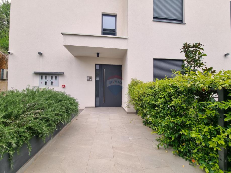 Armirano- betonska konstrukcija, fasada s grafitnim stiroporom 10 cm, videonadzor 24 h, videoportafon, aluminijska stolarija (marke Wicona) s roletama na električni pogon u čitavom stanu, sanitarije Geberit i Catalano, podno grijanje na Daikin dizalicu topline + Daikin klima uređaji (u svakoj prostoriji + dnevni boravak).