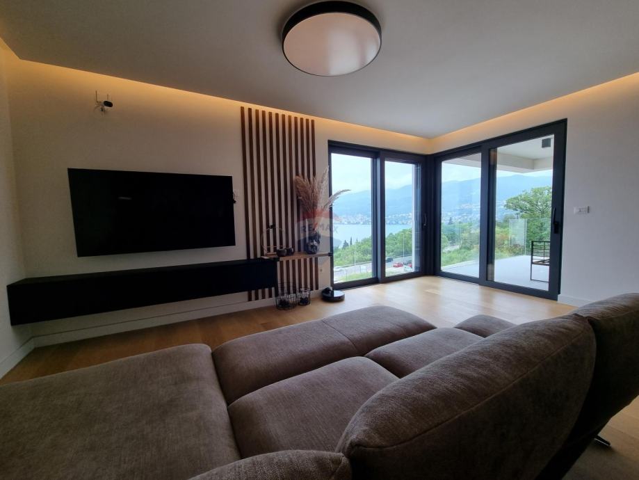 Sastoji se od: 2 spavaće sobe, dnevnog boravka s kuhinjom i blagovaonom, kupaone, strojarnice, hodnika i natkrivene terase s otvorenim pogledom na more, otoke i Opatijsku rivijeru.