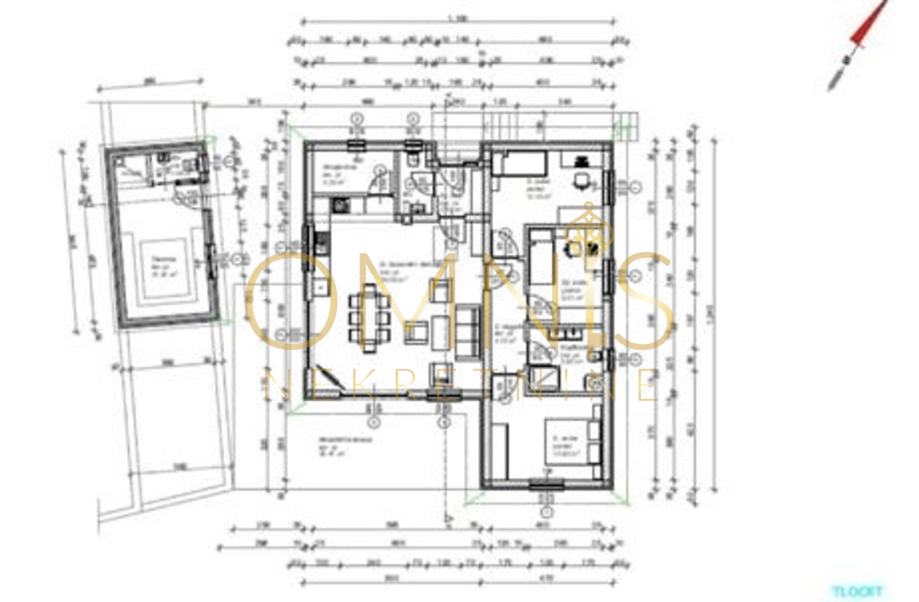 Predviđena izgradnja obiteljske kuće tlocrtne površine ccc 100 m2, te pomoćnog objekta od 20 m2.