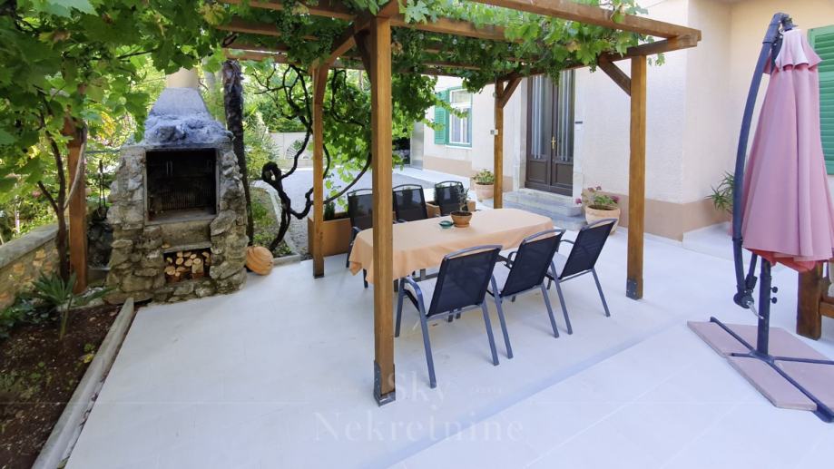 Stan ima izlaz na uređeno dvorište s prostorom za ljetna druženja, opremljenim roštiljem i ugodnom zonom za opuštanje. Zgrada se nalazi u blizini mora i svih potrebnih sadržaja za svakodnevni život.