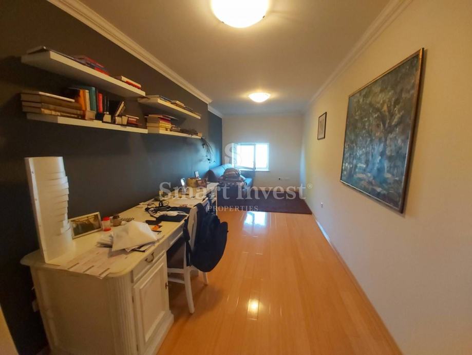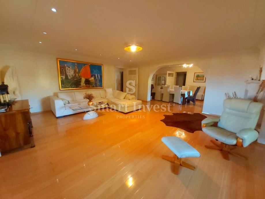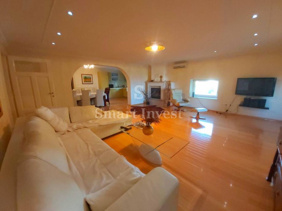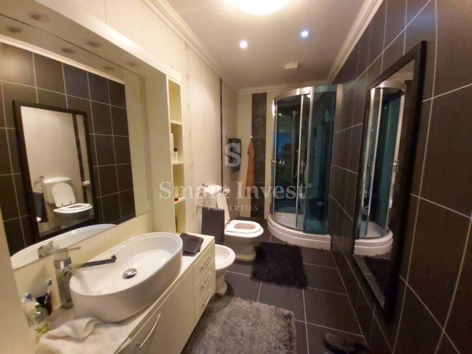 Stan od 123 m2, nalazi se na 2. katu, kompletno je renoviran i luksuzno namješten i opremljen te sav namještaj ostaje u stanu, sastoji se od prostranog dnevnog boravka s kaminom, blagovaonice, kuhinje, 2 spavaće sobe, hodnika, 2 kupaonice (jedna s hidromasažnim tušem, druga s velikim jacuzziem), te ima spremište od 18 m2 u suterenu zgrade.