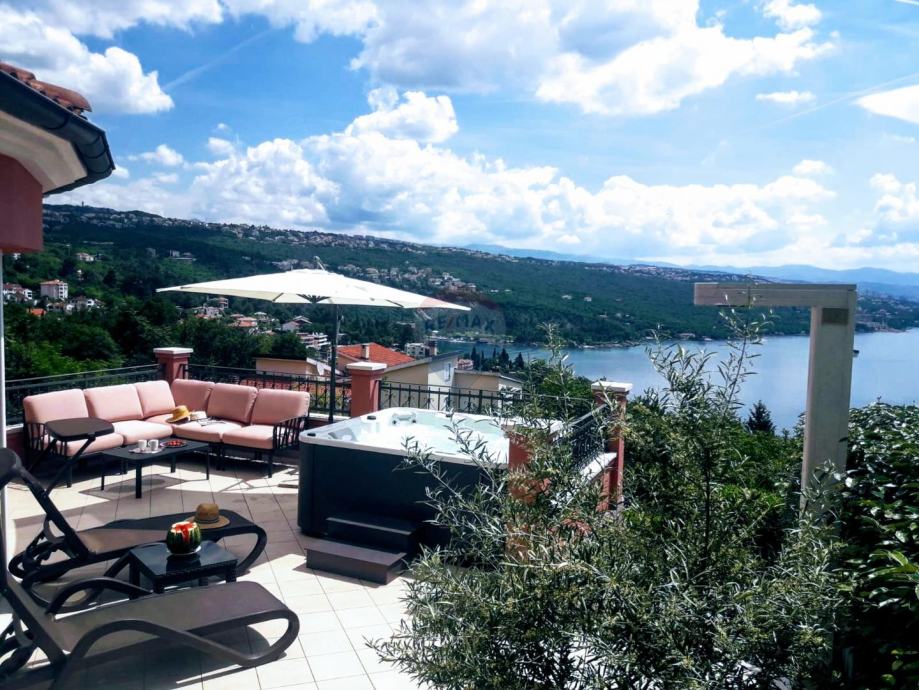 Vila je smještena 1,5 km od centra Opatije na odličnoj mikrolokaciji sa predivnim otvorenim pogledom na cijeli Kvarnerski zaljev.