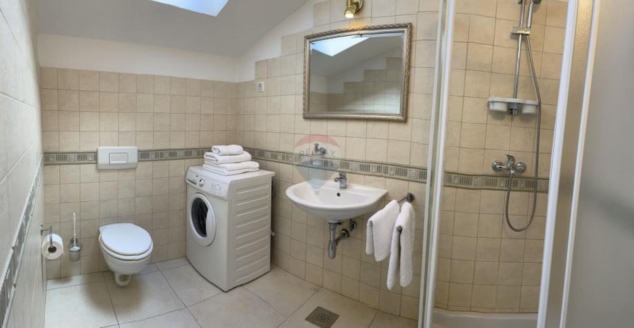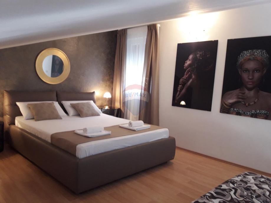 Ukupna površina stambenog prostora od 550m2 sastoji se od suterena, prizemlja, kata i visokog potkrovlja, u naravi 3 odvojena stana.