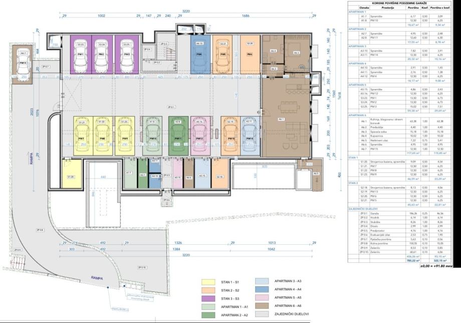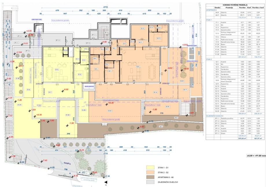 Ukupna korisna vrijednost neto površina stana S2 iznosi 251,18 m².