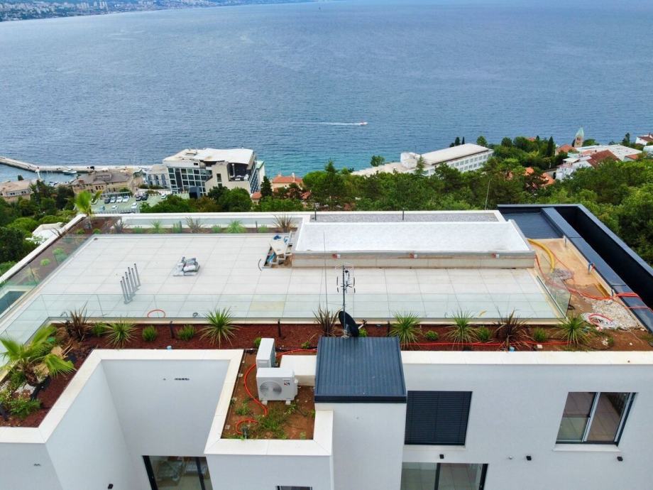 Ekskluzivni stan u urbanoj vili od tri etaže, s pogledom na more, sa devet stanova i pet bazena, u Opatiji, udaljeno od mora 250 m.