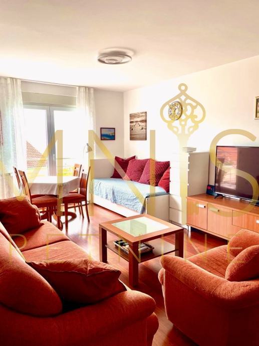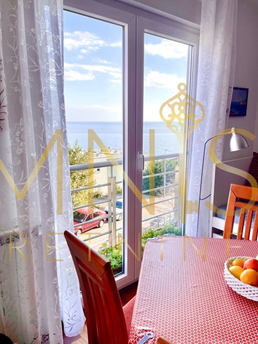 Stan je jugoistočne orijentacije, što osigurava obilje sunca tijekom cijelog dana, a iz njega se pruža panoramski pogled na more. Uz to, tu su balkon i lođa, koji pružaju dodatni prostor za opuštanje i uživanje u mediteranskoj atmosferi.