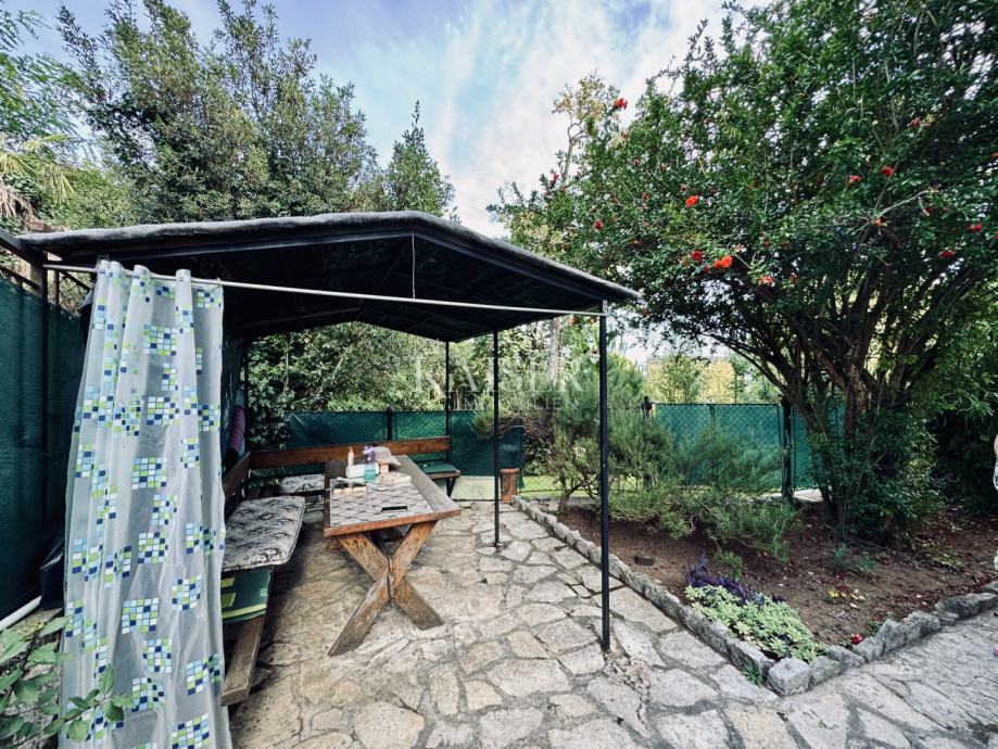 Osim same lokacije, najveća prednost ovog stana je vjerojatno terasa i okućnica neposredno ispred stana, koje nisu dio stana (u suvlasništvu su zgrade), ali ih nitko drugi ne koristi, a vlasnici stana su na njima izgradili i dvije nadstřešnice koje posebno ljeti vrlo često koriste.